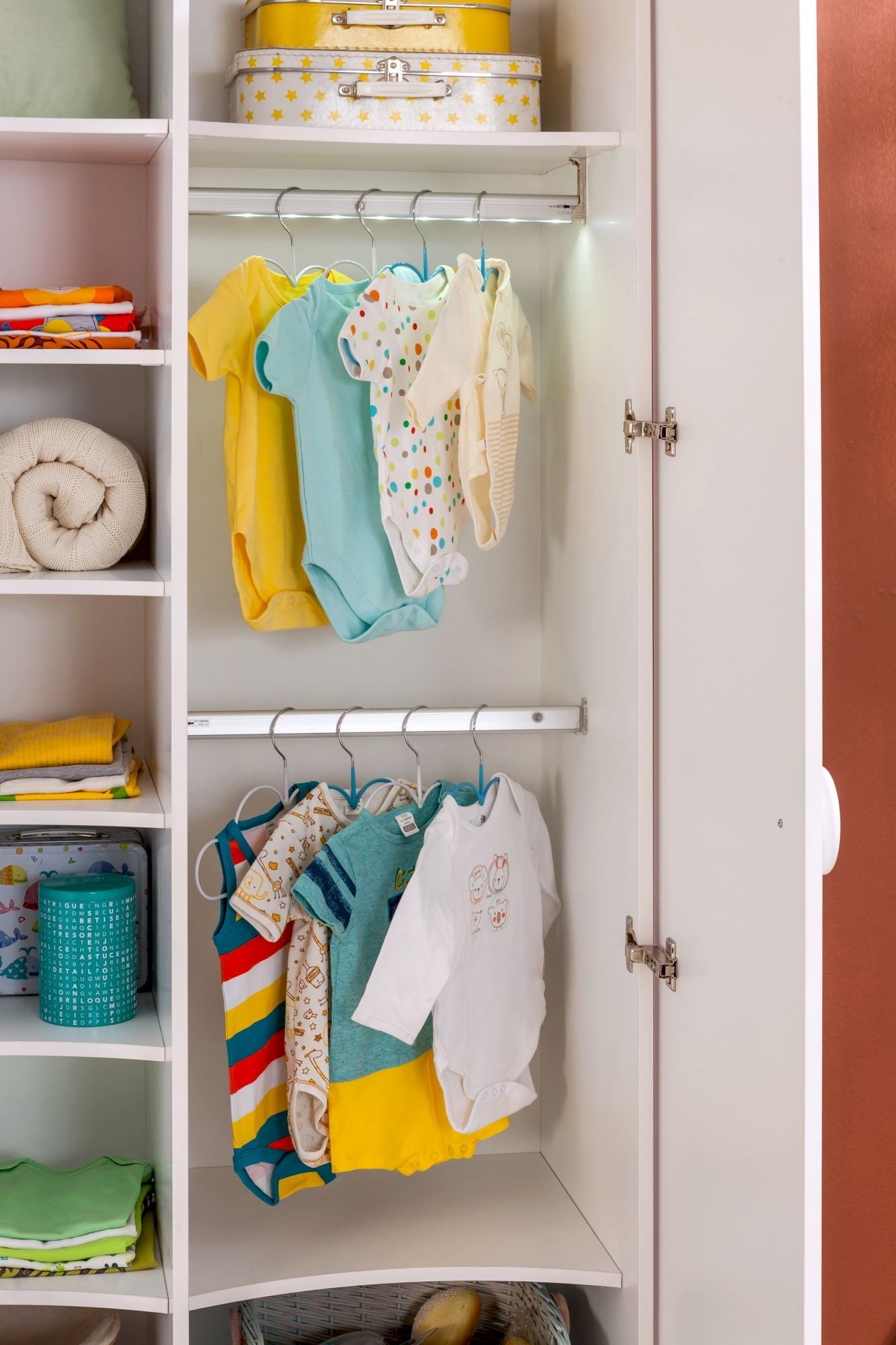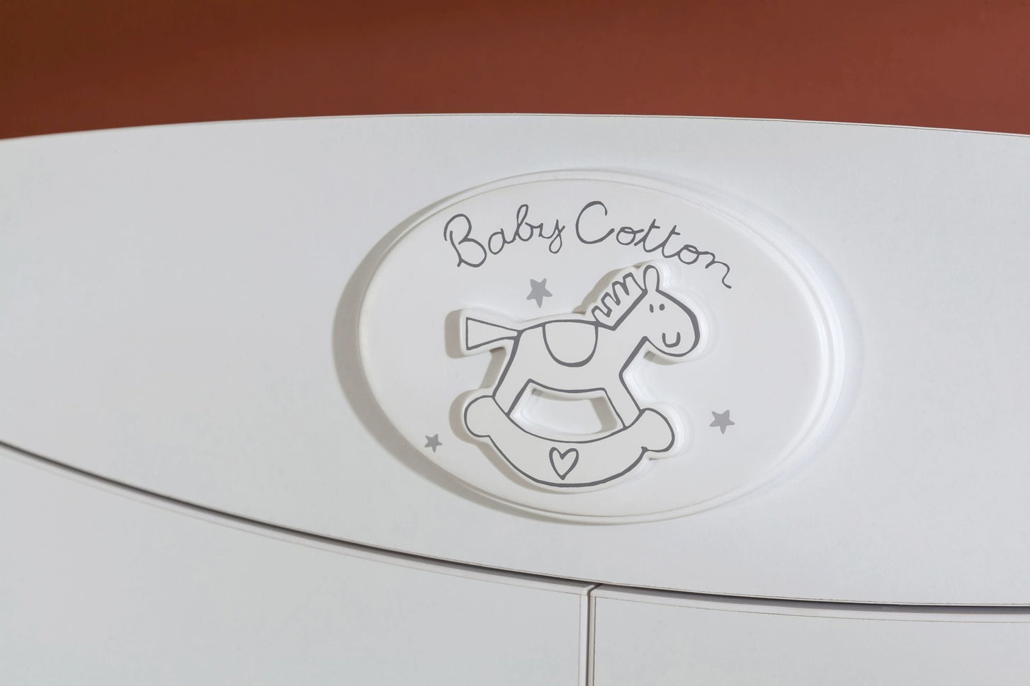 Die Farbe weiß ist zeitlos elegant, wie unsere Babyzimmer-Serie "Baby Cotton" eindrucksvoll zeigt. Pflegeleichte Oberflächen und frei von jeglichen Schad- und Giftstoffen ist es zudem perfekt für die Kleinsten geeignet. Kleidungs- und Wäschestücke lassen sich in den zahlreichen Ablagefächern dieses 2-türigen Kleiderschranks ordentlich verstauen. Eine Kleiderstange bietet genügend Platz für Jacken und Co. Das Möbelstück besitzt eine TÜV und GS geprüfte Qualität.