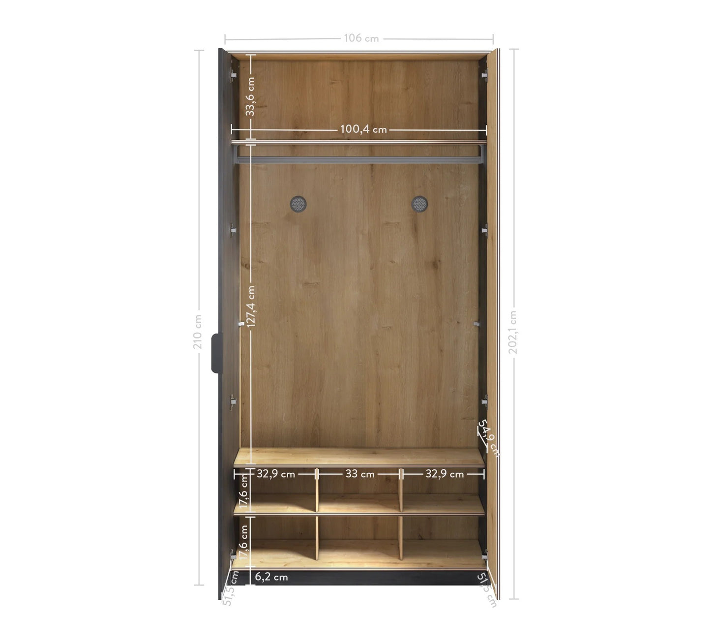 Außenmaß: 106 x 210 x 61 cm (B/H/T)