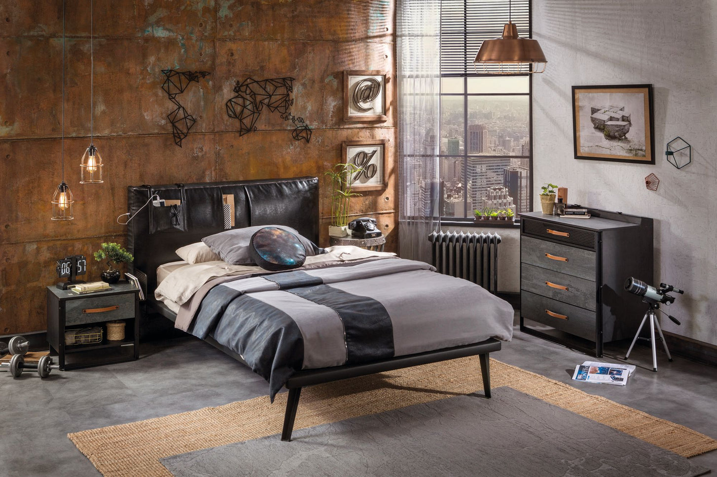 Die Cilek Dark Metal Serie zeichnet sich durch stylisches Industrial Design, der mittlerweile zu einem zeitlosen Trend gehört. Die Möbelserie in Schwarz und Grau in Kombination mit Metall, hält sich in der Farbigkeit diskret und sorgt für eine coole Atmosphäre in Ihrem Jugendzimmer.