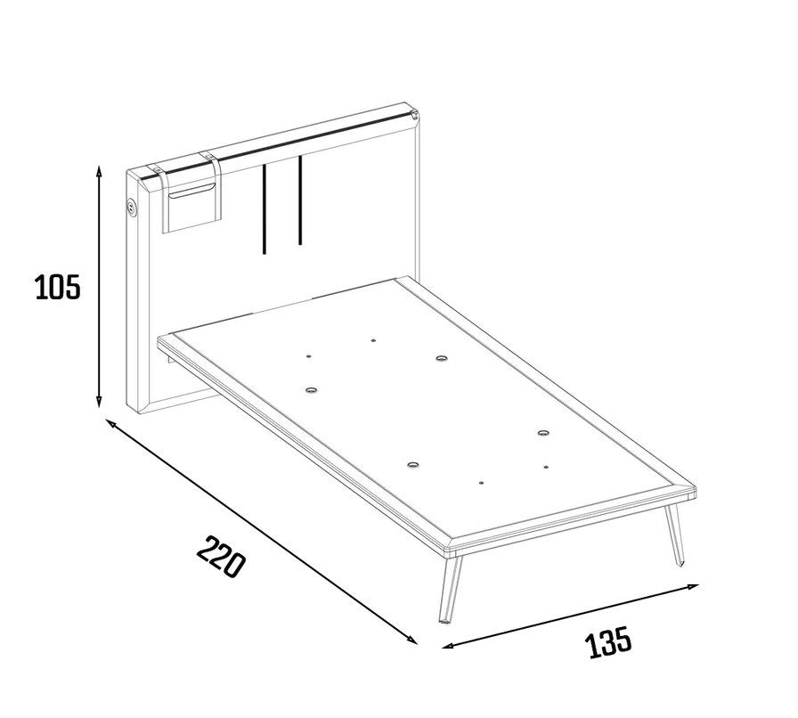Außenmaß: 135 x 105 x 220 cm (B/H/T) Liegefläche: 120 x 200 cm (B/L)