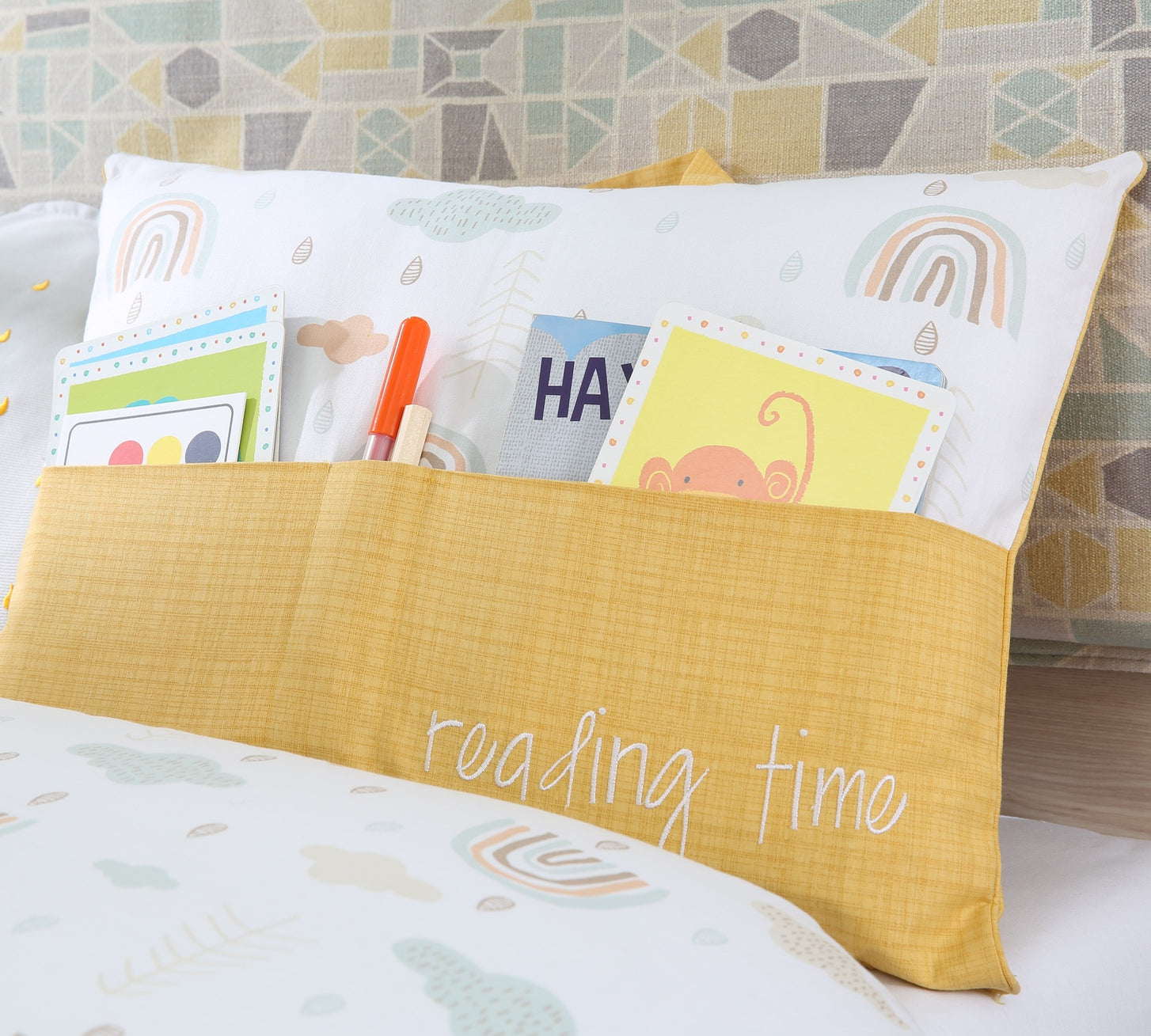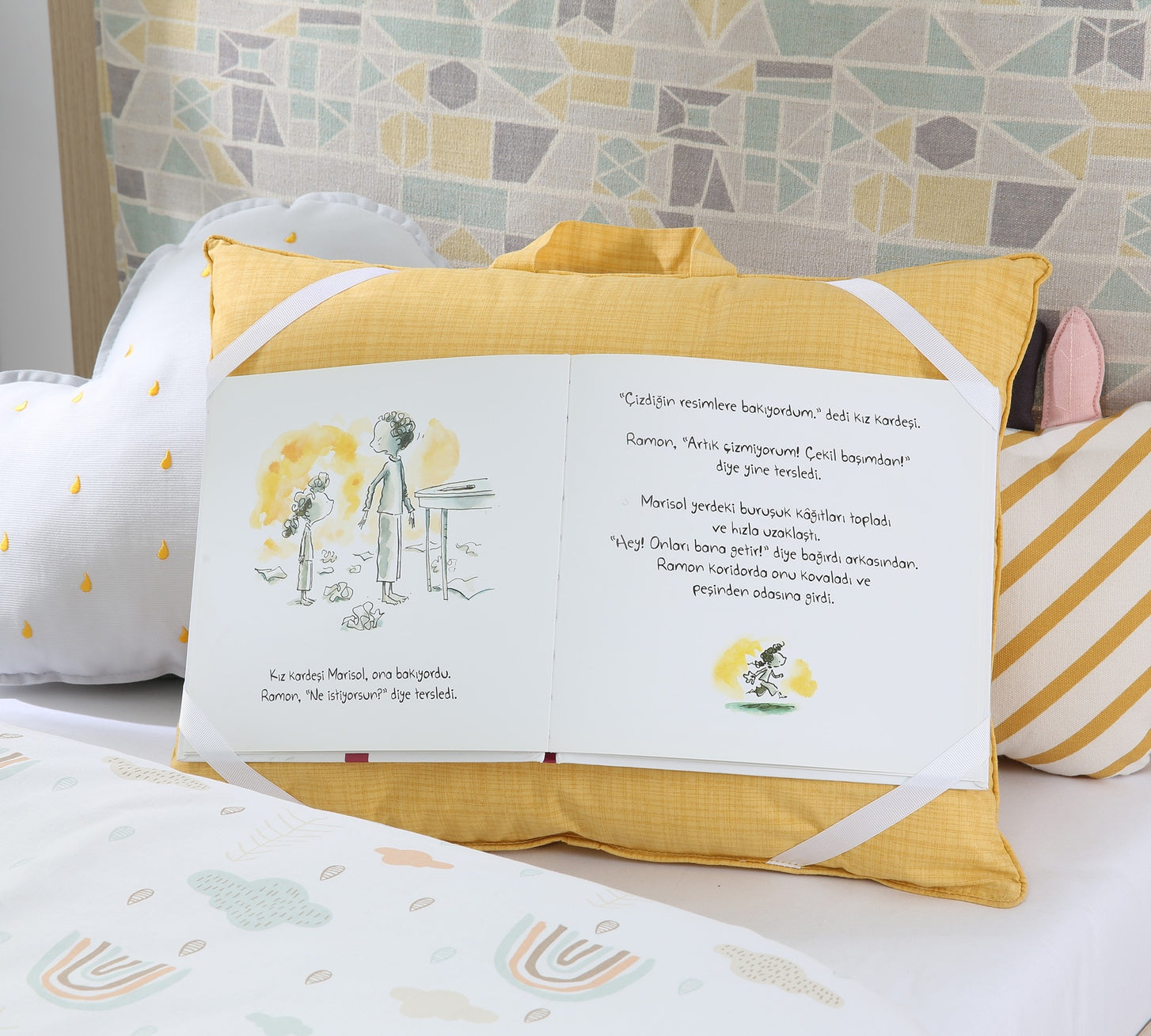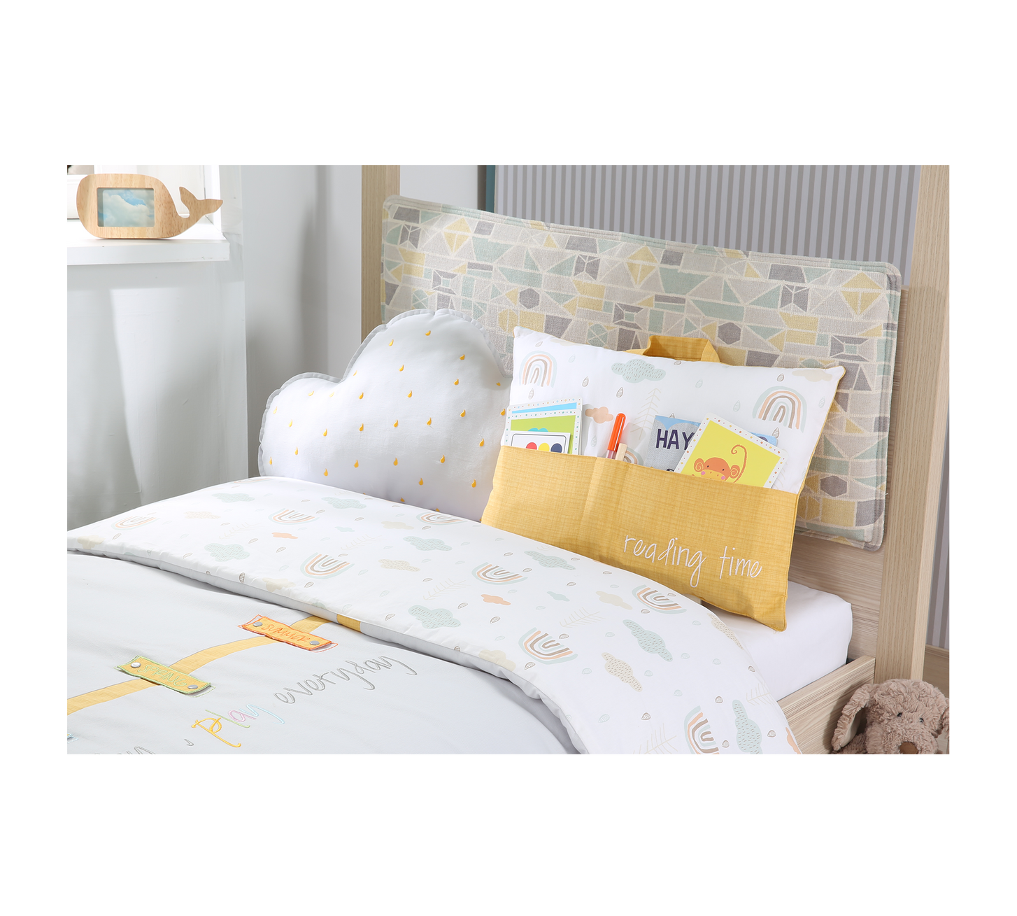 Tagesdecke: 130 x 190 cm (B/L) Lesekissen: 35 x 45 cm (B/L) Motivkissen Wolke: 30 x 35 cm (B/L) - Montage & Versand