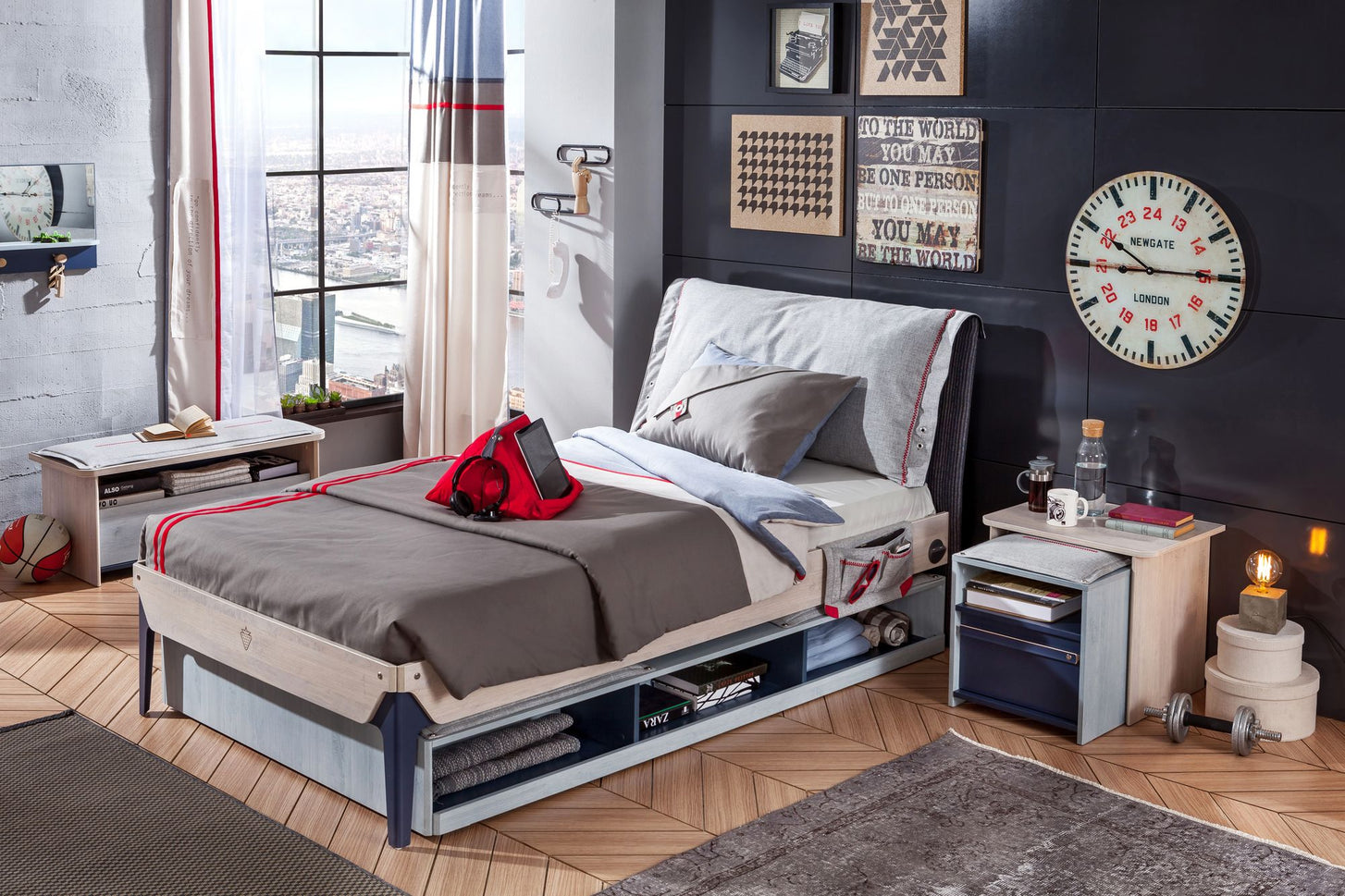 Die Serie Trio zeichnet sich durch stylisches Industrial Design mit vielen individuellen Kombinationsmöglichkeiten für eine Kinder- und Jugendzimmereinrichtung. Die Möbelserie Trio in trendigen Grau- und Holztönen in Kombination mit marineblau ist absolut zeitlos und überzeugt durch ein modernes Design. Die ruhigen Farben laden zu entspannen und relaxen ein.