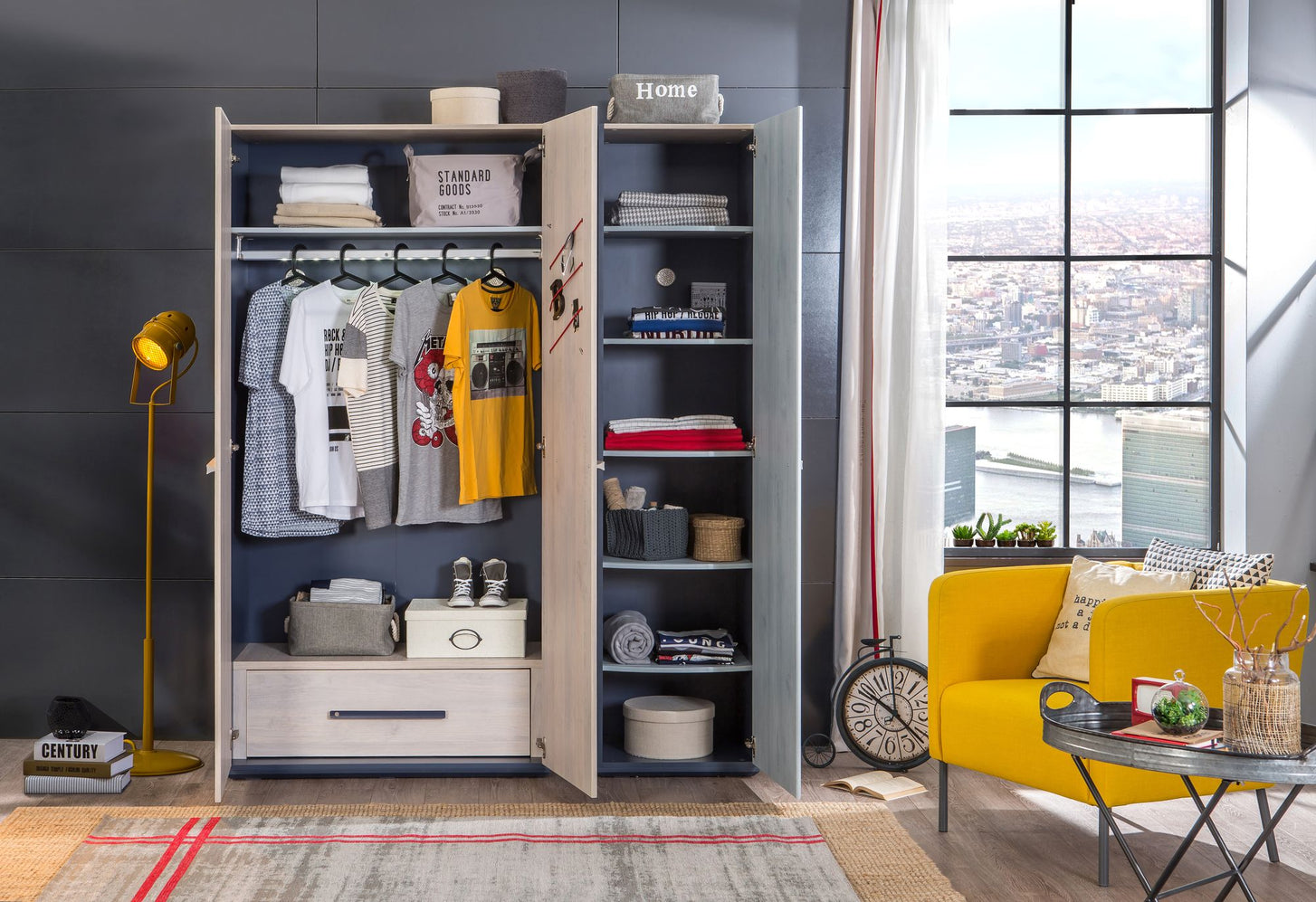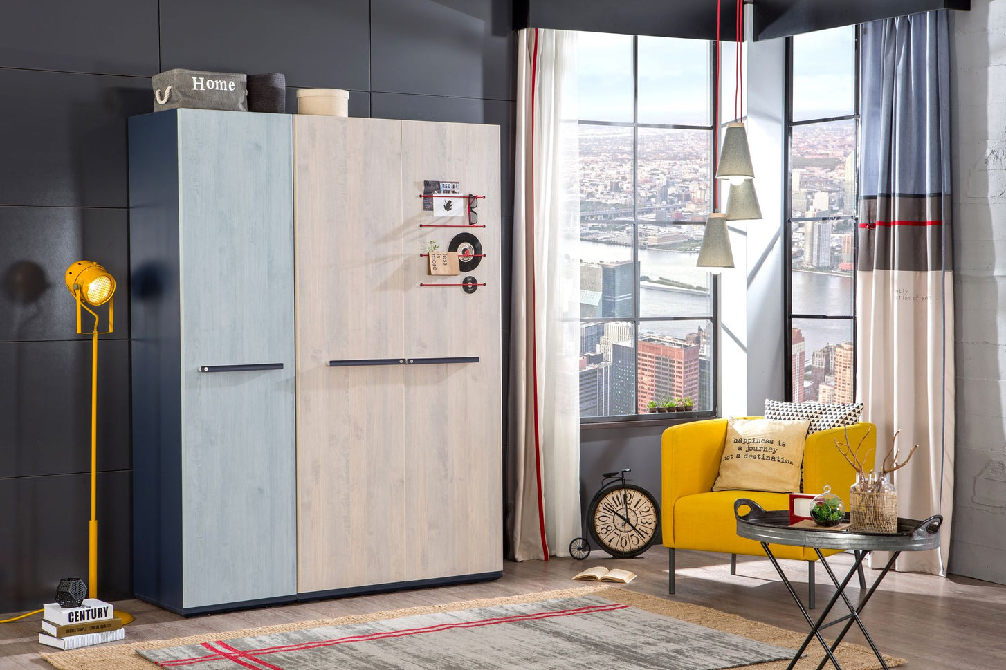 Die Serie Trio zeichnet sich durch stylisches Industrial Design mit vielen individuellen Kombinationsmöglichkeiten für eine Kinder- und Jugendzimmereinrichtung. Die Möbelserie Trio in trendigen Grau- und Holztönen in Kombination mit marineblau ist absolut zeitlos und überzeugt durch ein modernes Design. Die ruhigen Farben laden zu entspannen und relaxen ein.