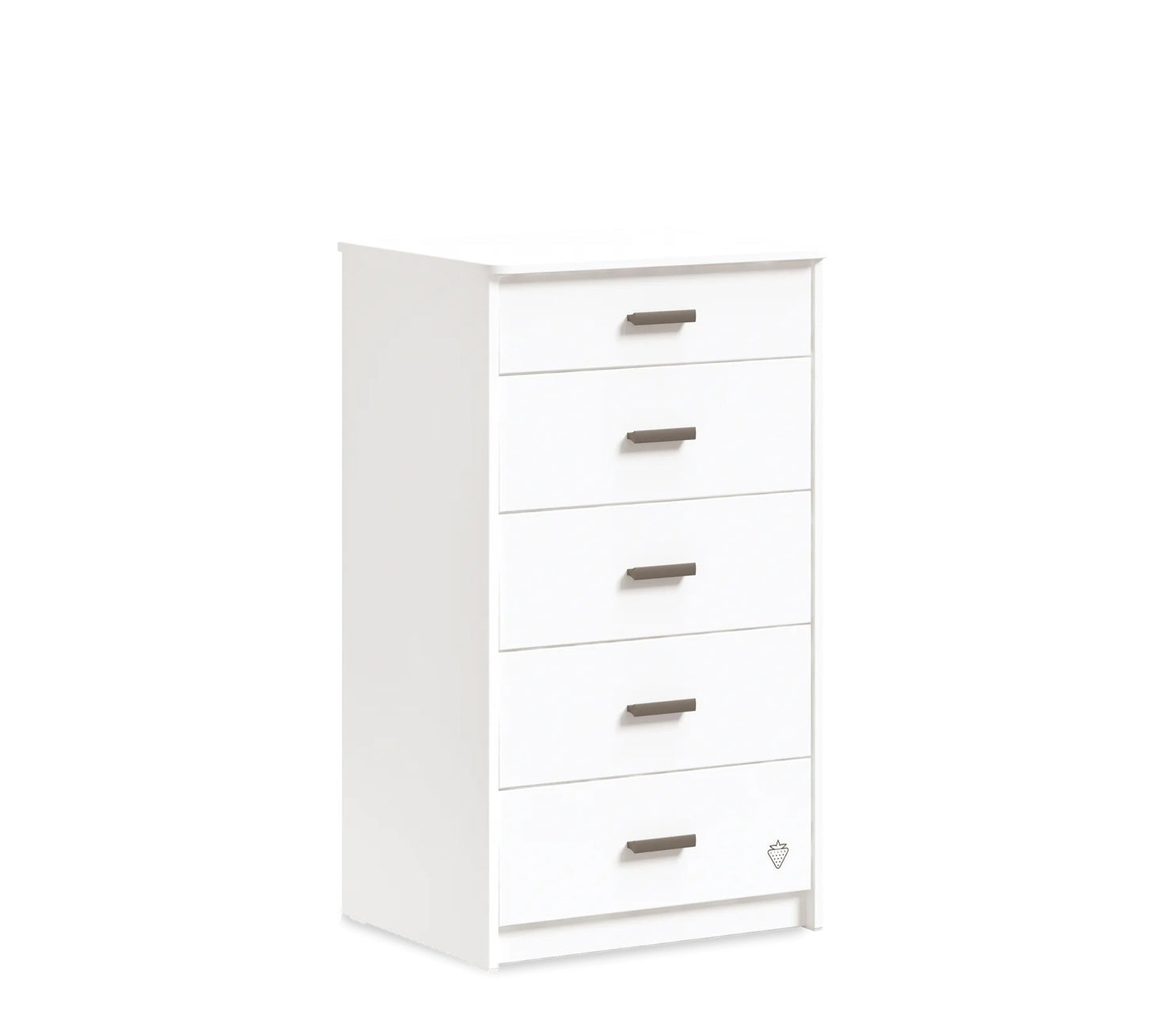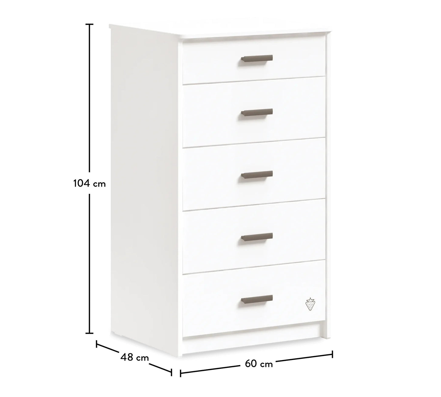 Diese Kommode aus der Serie "White" von Cilek bringt mit ihrem zeitlosen Design Ordnung in jedes Kinderzimmer. Mit fünf Schubladen, die mit einem Soft-Close-System ausgestattet sind, bietet sie viel Platz zum Verstauen verschiedener Gegenstände.