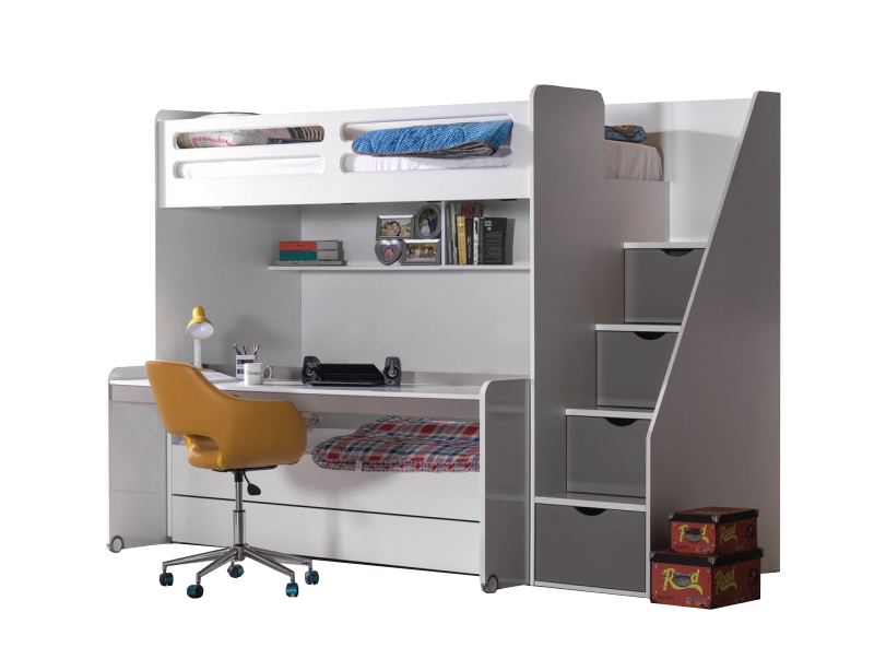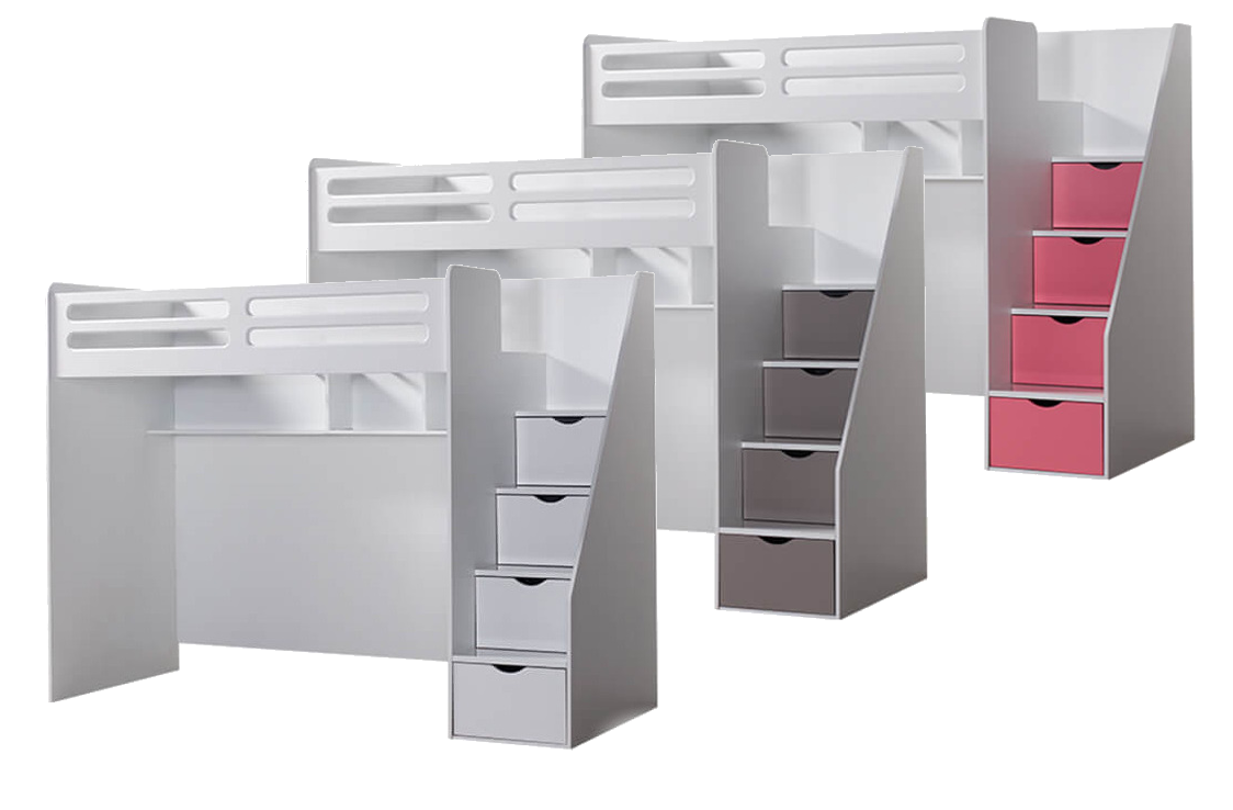 - Hochbett mit 4 Stufen-Stauraumtreppe