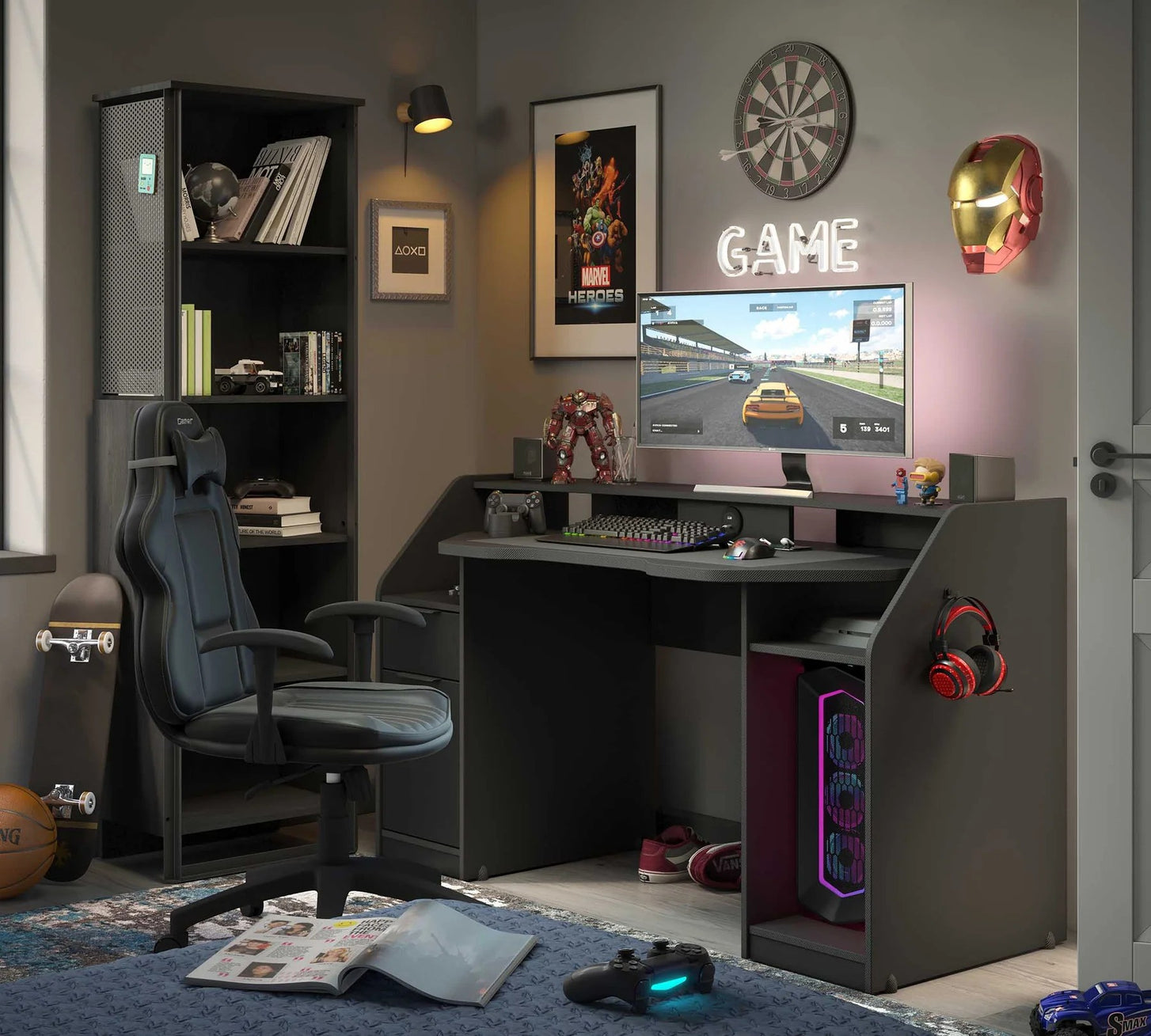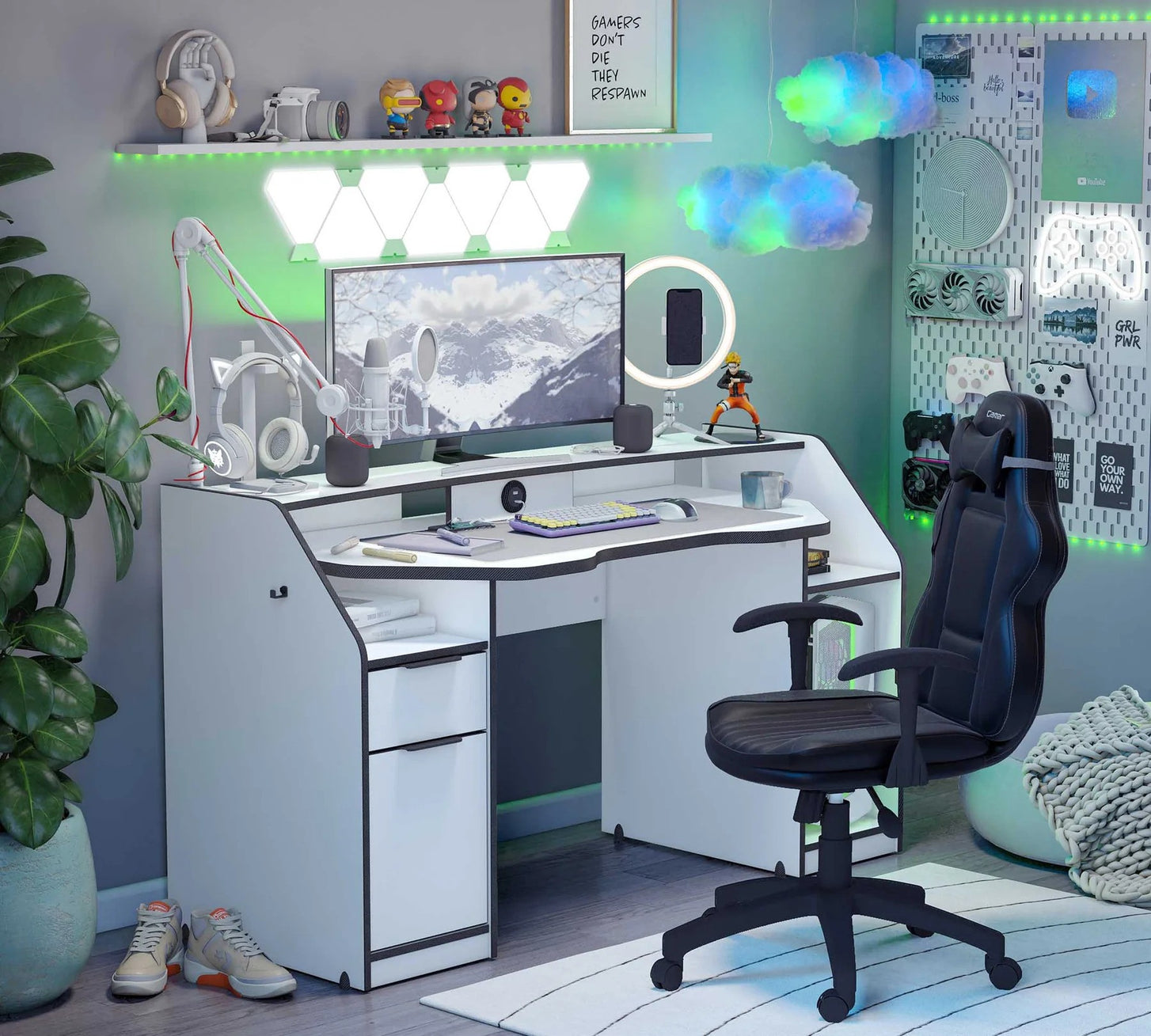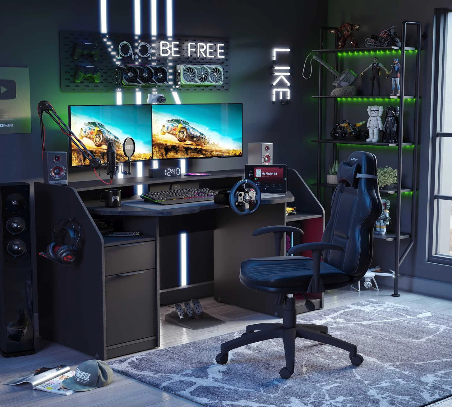 Der Gamer-Stuhl garantiert Ihnen Komfort während langer Stunden vor dem Computer. Dank seines multifunktionalen Mechanismus, der gleichzeitig Höhenverstellung und Festlegung der Neigung ermöglicht, verfügt der Stuhl über eine Ledersitz- und -lehnenpolsterung.