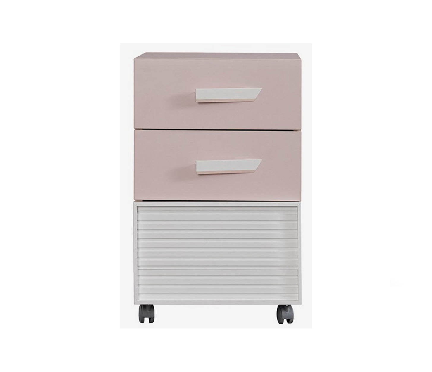 - zwei Schubladen in Pastellrosa mit weißem Griff