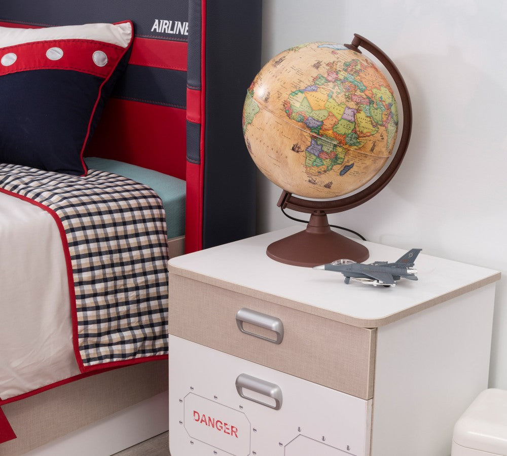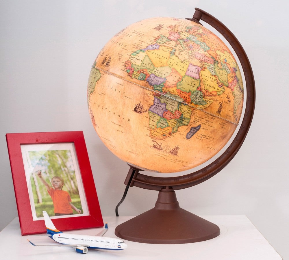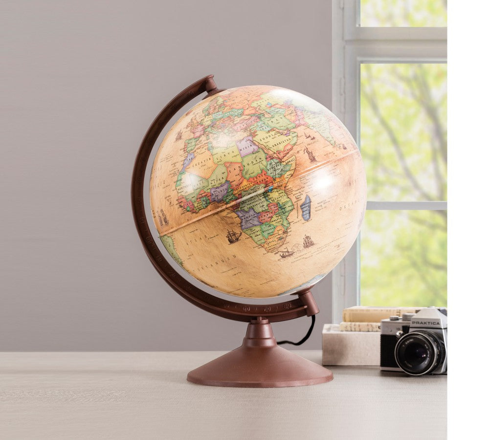 Weltkugel-Tischlampe wird zerlegt geliefert