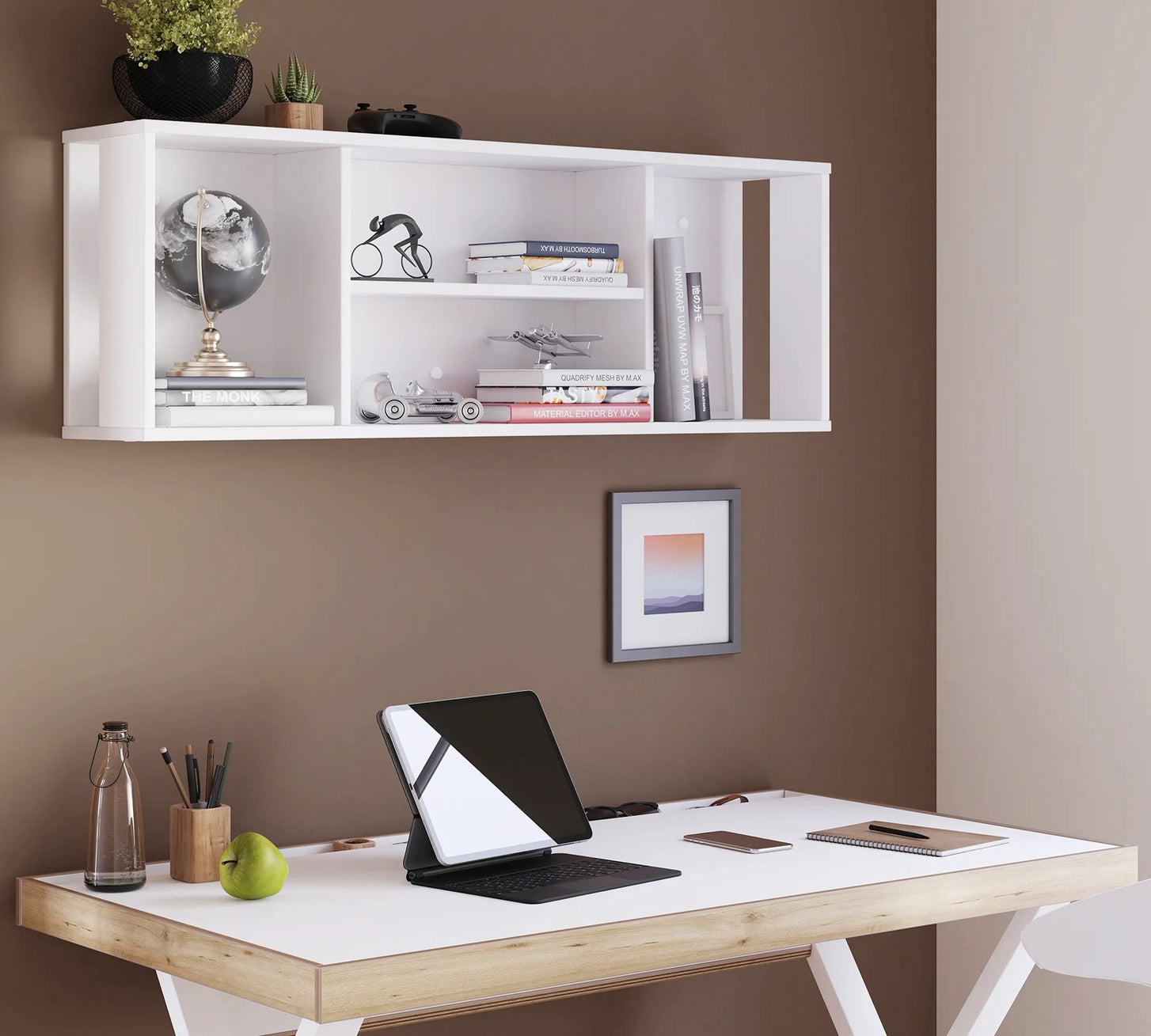 Unser Produkt wurde mit sorgfältig ausgewählten Materialien und Farben entwickelt, die perfekt zur Serie passen und zur Wandmontage vorgesehen sind. Das spezielle Kantenband verleiht dem Produkt nicht nur Haltbarkeit und Ästhetik, sondern bietet auch die Möglichkeit, Ihre Bücher zur Schau zu stellen und zu personalisieren. Das Produkt kann horizontal verwendet werden und hat eine Tragfähigkeit von bis zu 20 kg, was es zur Lösung für Ihre täglichen Bedürfnisse macht.