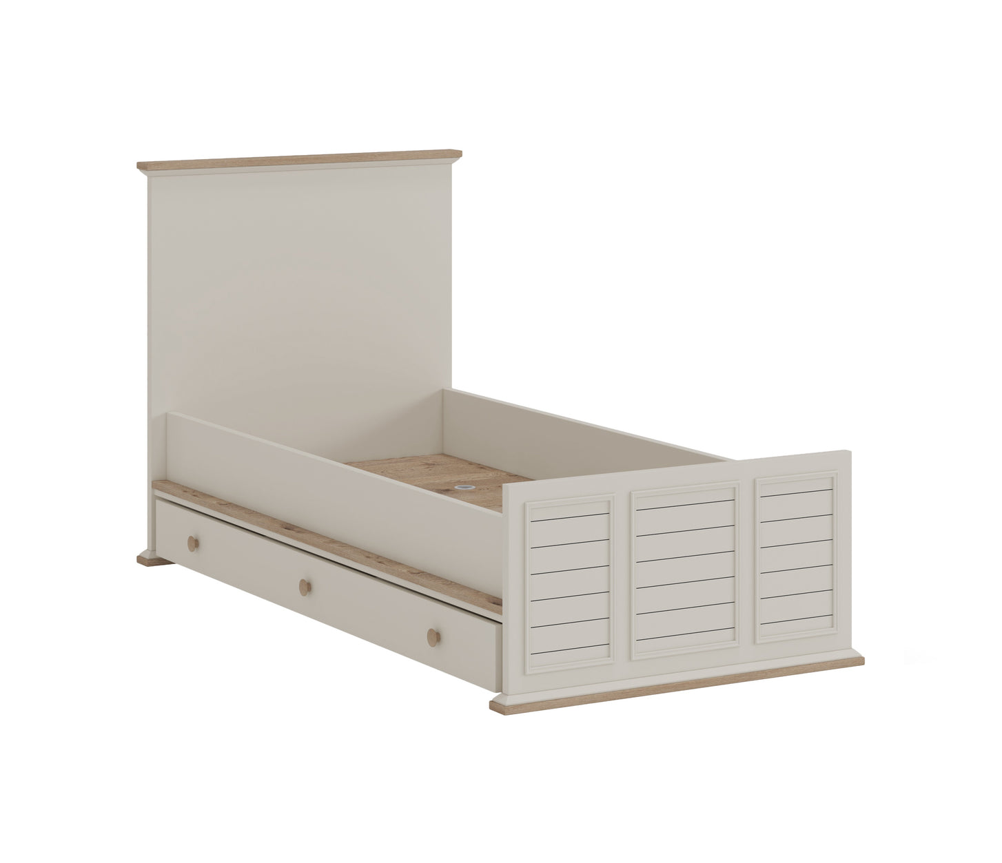 Das Babybett GOLF von Newjoy ist ein wahrer Allrounder für das Kinderzimmer, der Ihr Kind von den ersten Lebenstagen an begleitet. Das liebevoll im Landhausstil gestaltete Bettchen bietet mit Gitter und höhenverstellbarem Geländer eine sichere Umgebung für Ihren kleinen Schatz. Die integrierte Kommode dient zunächst als Wickelplatz und reduziert die Liegefläche auf 80 x 130 cm. Später lässt sich das Bett ganz einfach zum Juniorbett umbauen und die Kommode wird zum praktischen Nachttisch.