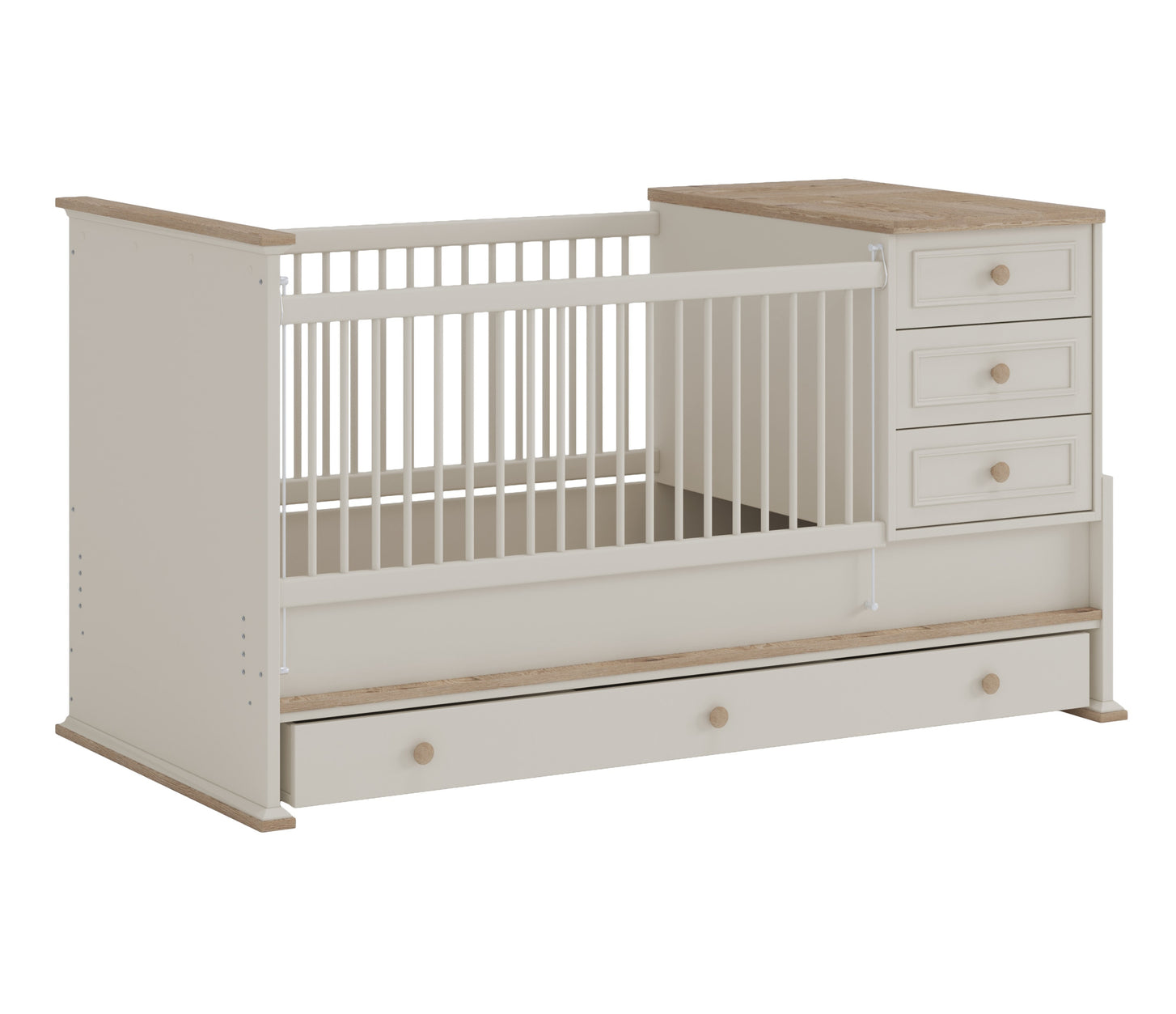 - Babybett nach dem Umbau = Kinderbett + Kommode + Bettkasten