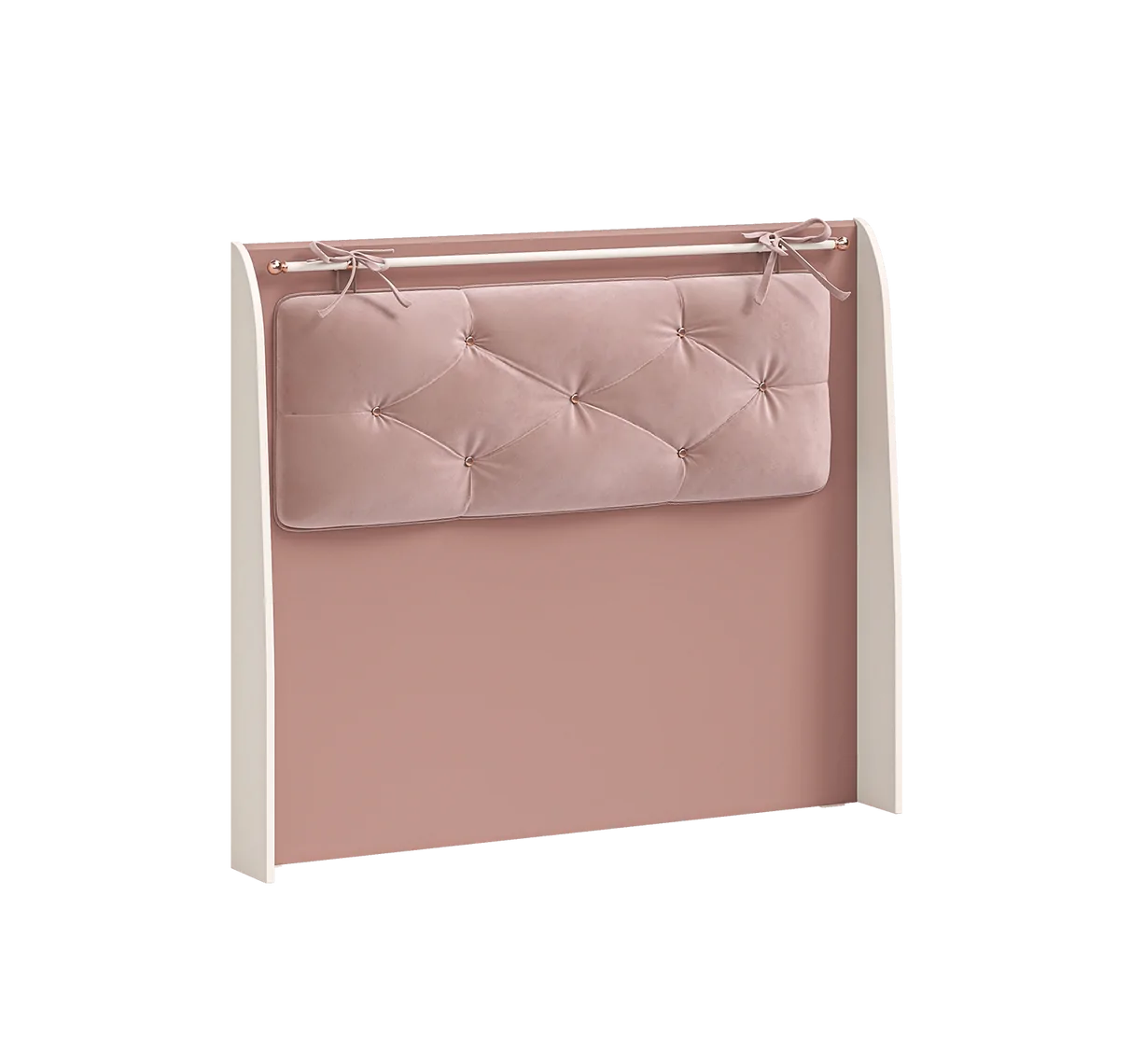 Edles Kopfteil: Gepolstert in Altrosa mit dekorativen Knöpfen in Roségold.