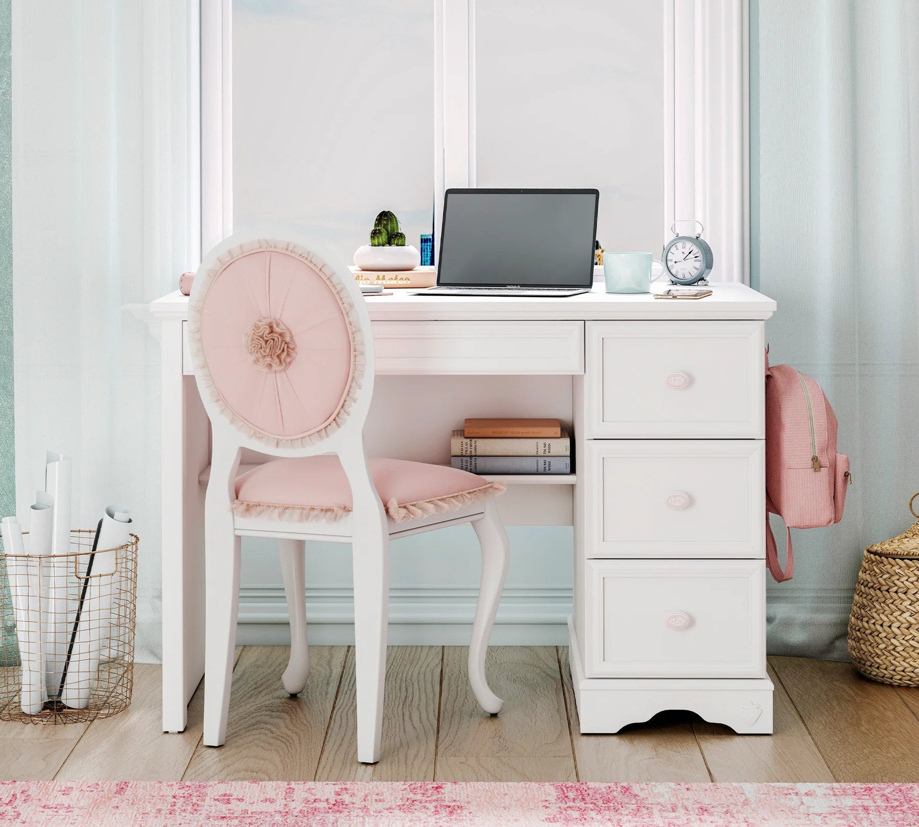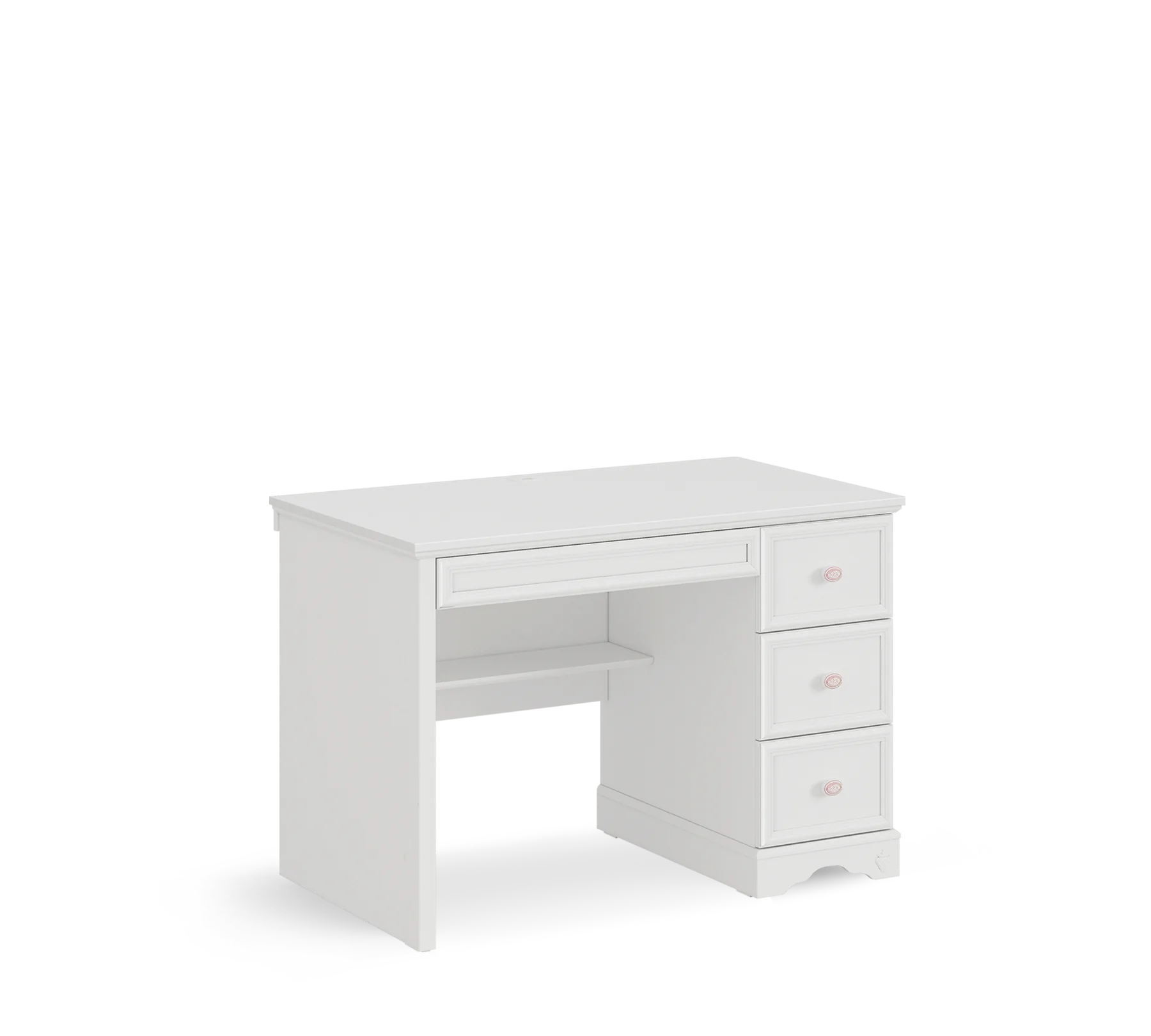 Vierfaches Schubladen-Glück: Drei seitliche Schubfächer und eine großzügige Schublade direkt unter der Arbeitsplatte bieten Platz für Stifte, Hefte und kleine Schätze.