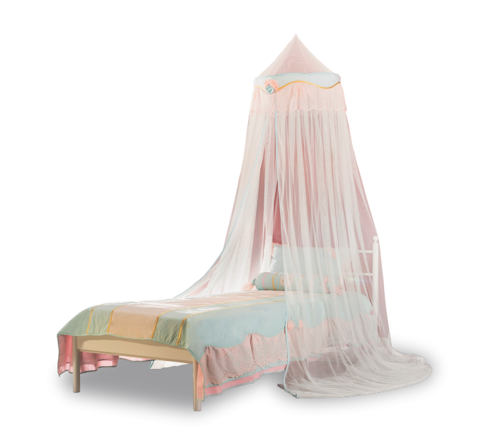 - Rosa Canopy Moskitonetz wird sorgfältig von erfahrenen Händen mit verschiedenen Stoffen, Spitzen und Verbindungsstangen genäht.