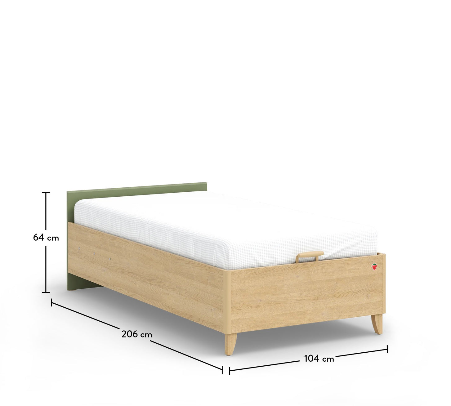 Produktinformationen "Cilek LOOF BED WITH BASE (100x200 cm)" Willkommen zur perfekten Kombination aus Komfort und Stil - dem Cilek LOOF Bett mit Bettkasten in der Größe 100x200 cm. Dieses Bett ist nicht nur ein Ort der Ruhe, sondern auch eine praktische Lösung für zusätzlichen Stauraum. Mit einem integrierten Bettkasten, der eine Hydrauliköffnung für mühelosen Zugang bietet, können Sie Ihre Decken, Kissen und vieles mehr bequem verstauen. Die Liegeplatte, die als Lattenrost fungiert, garantiert einen erholsamen Schlaf, während das Design mit Holzoptik und einer olivgrünen Rückwand Ihrem Schlafzimmer eine moderne Note verleiht. Entdecken Sie das Cilek LOOF Bett und verwandeln Sie Ihr Schlafzimmer in eine Oase der Entspannung und des Stils.