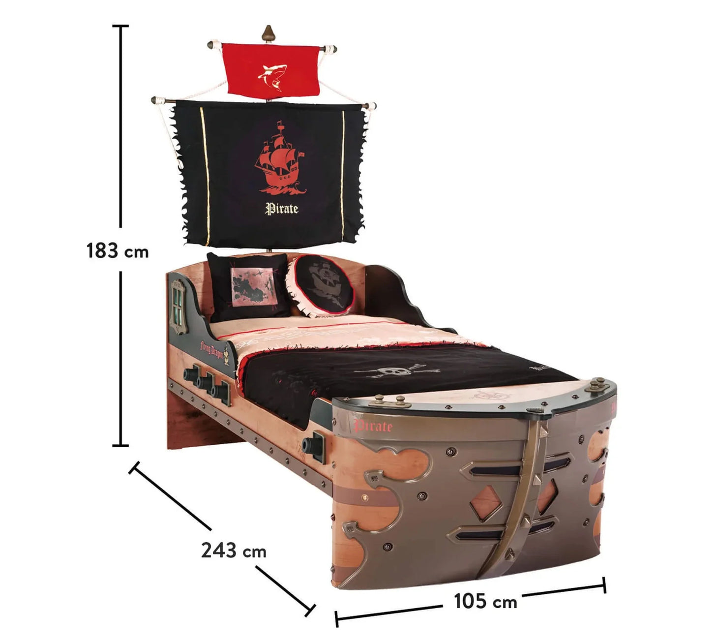- Maße des Schiffsbettes: B/H/T 105 x 183 x 241 cm