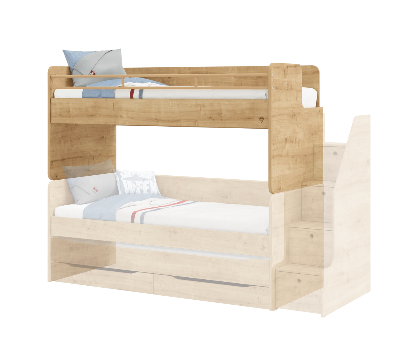 Wandlungsfähigkeit: Das Bett wächst mit deinen Ansprüchen. In Kombination mit weiteren Studio-Elementen lässt es sich im Handumdrehen zum Hoch- oder Etagenbett erweitern.
