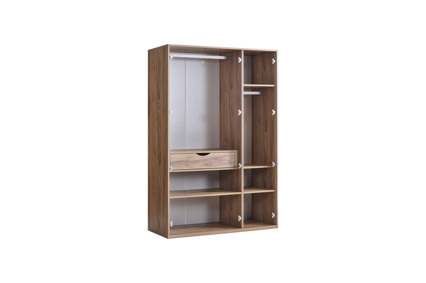 - Einteilung Mitte und Links: 1 beleuchtete Kleiderstange, 1 Schublade, 2 Regalfächer