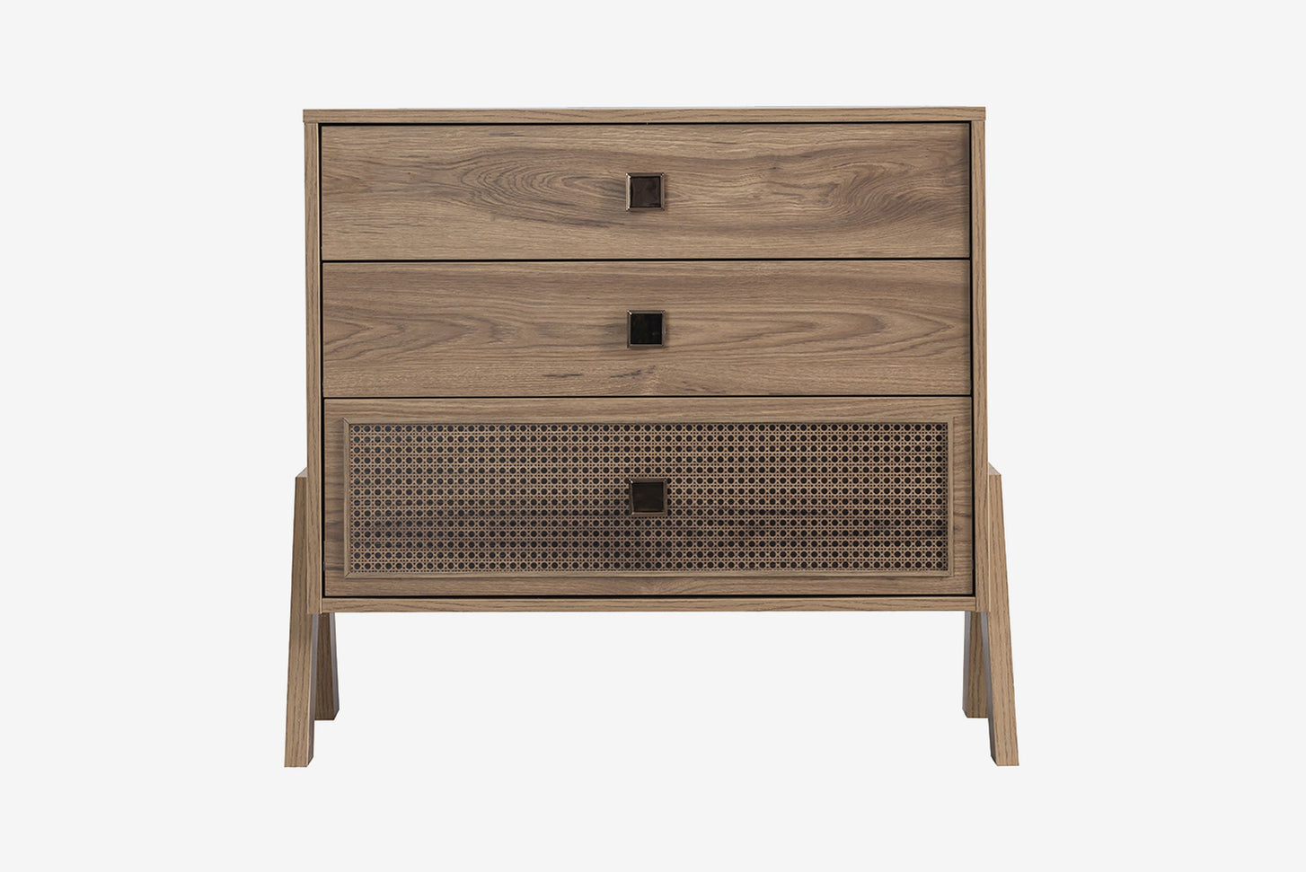- Holzfarbene Kommode mit drei Schubladen mit Dämpfern