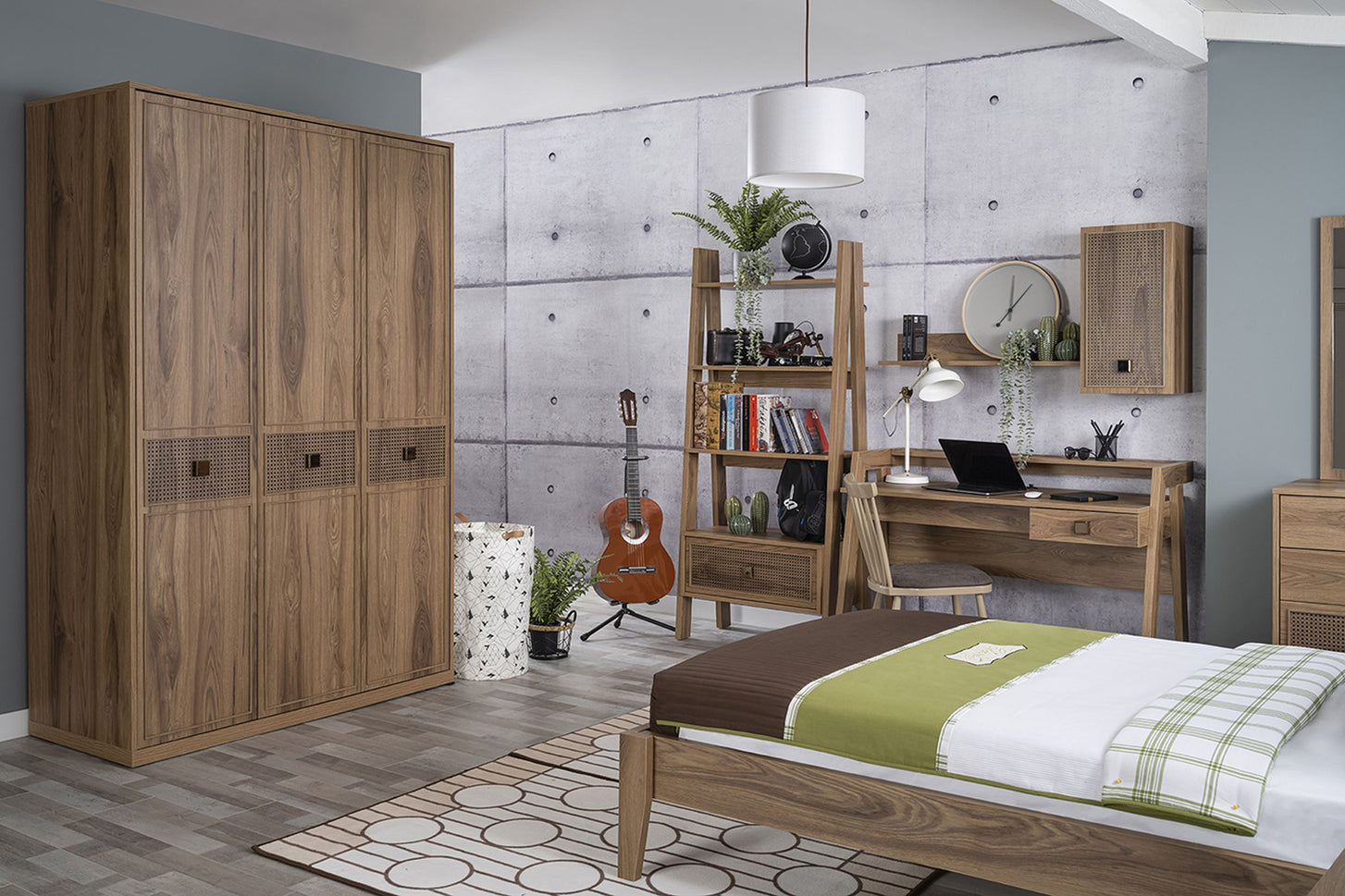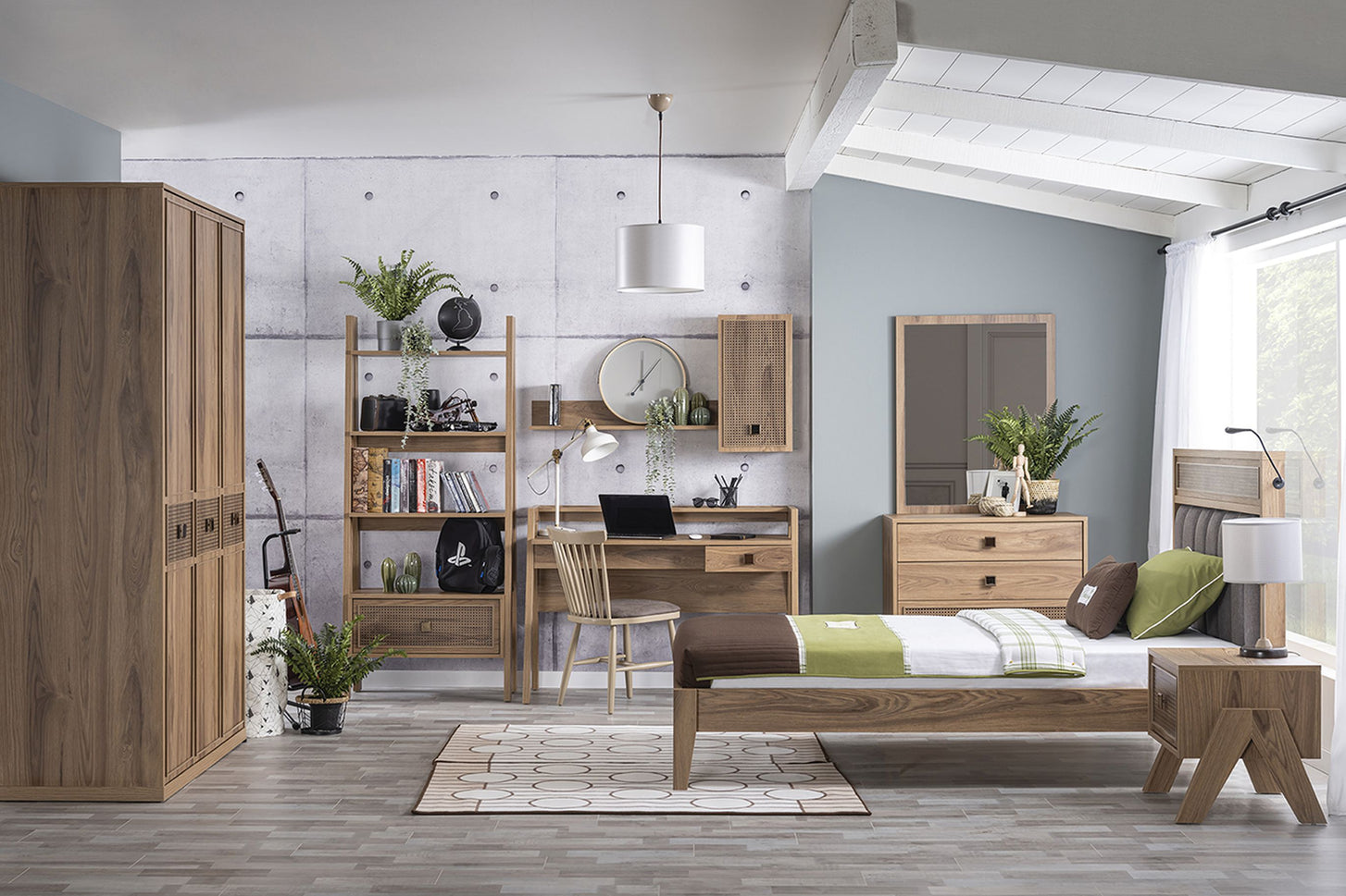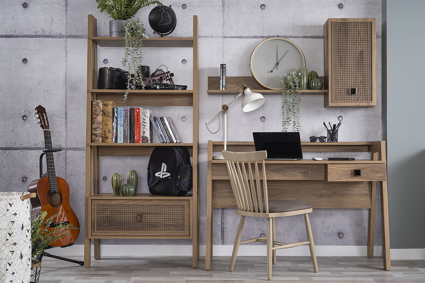 Besonders harmonisch wirkt das Wandregal in Kombination mit dem passenden Schreibtisch der Serie TRIO – für ein stilvoll abgestimmtes Jugendzimmer mit durchdachtem Stauraum.