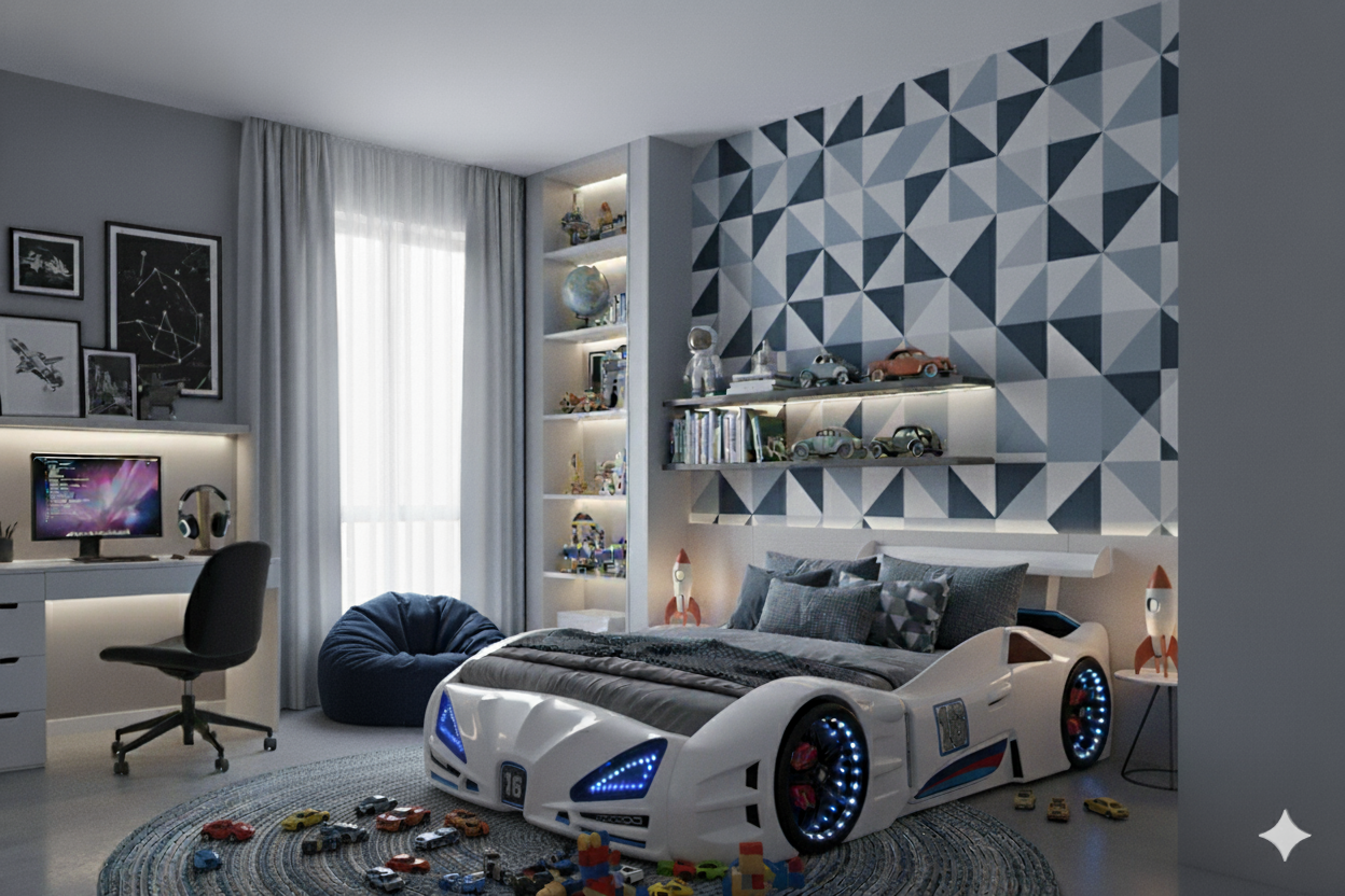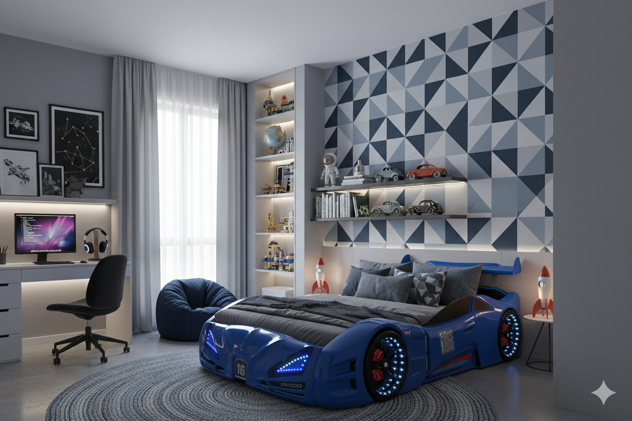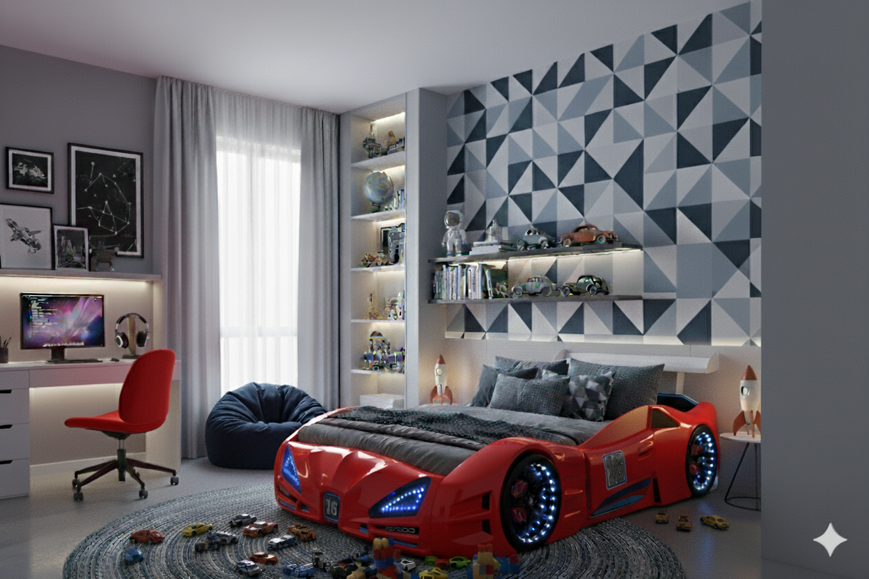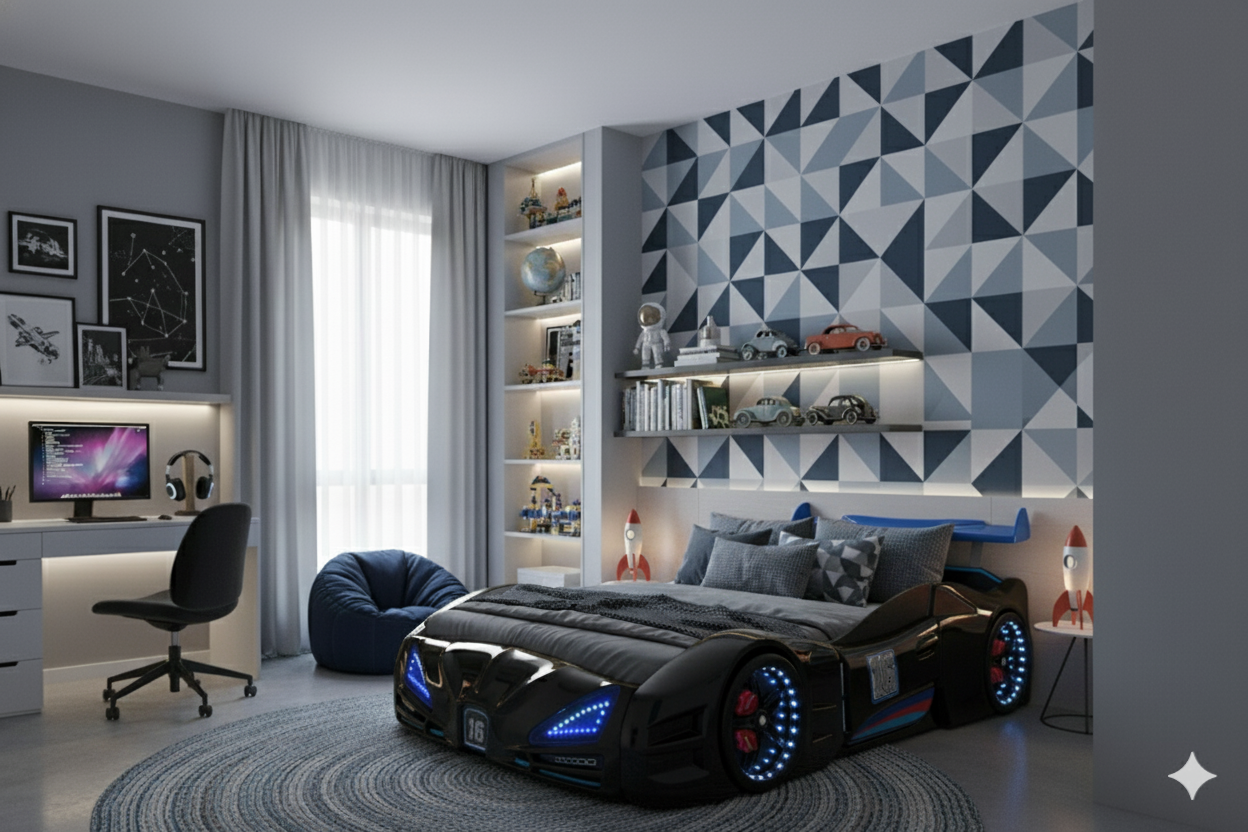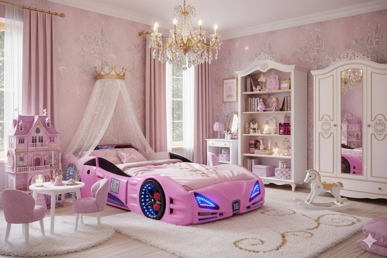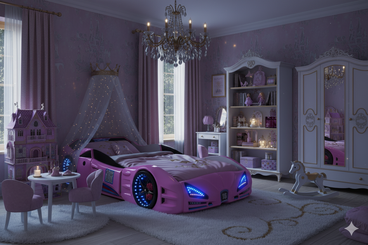 Autobett für Kinder | Fantasievolles Schlafen mit LED-Lichtern – Kinder Komfort