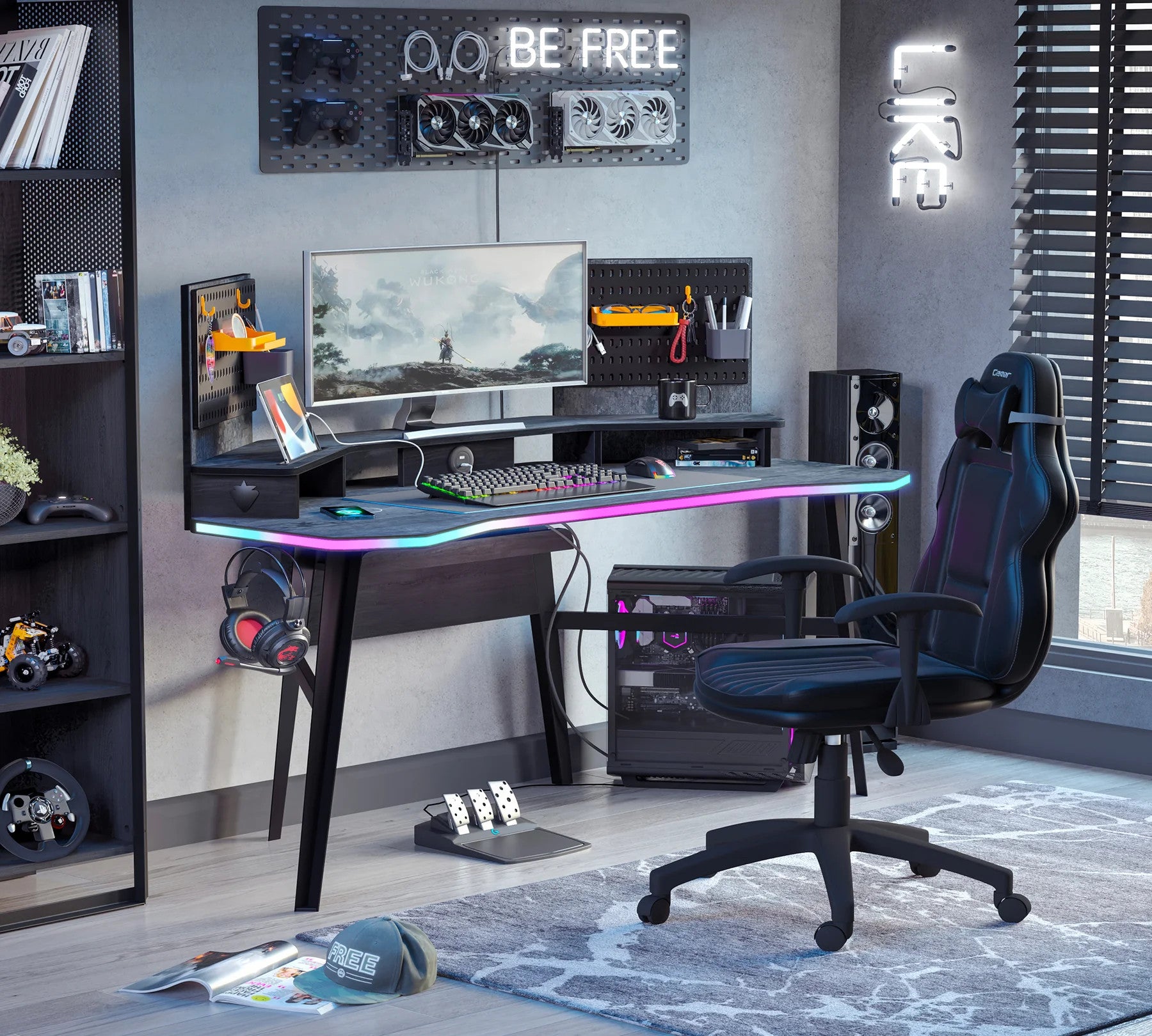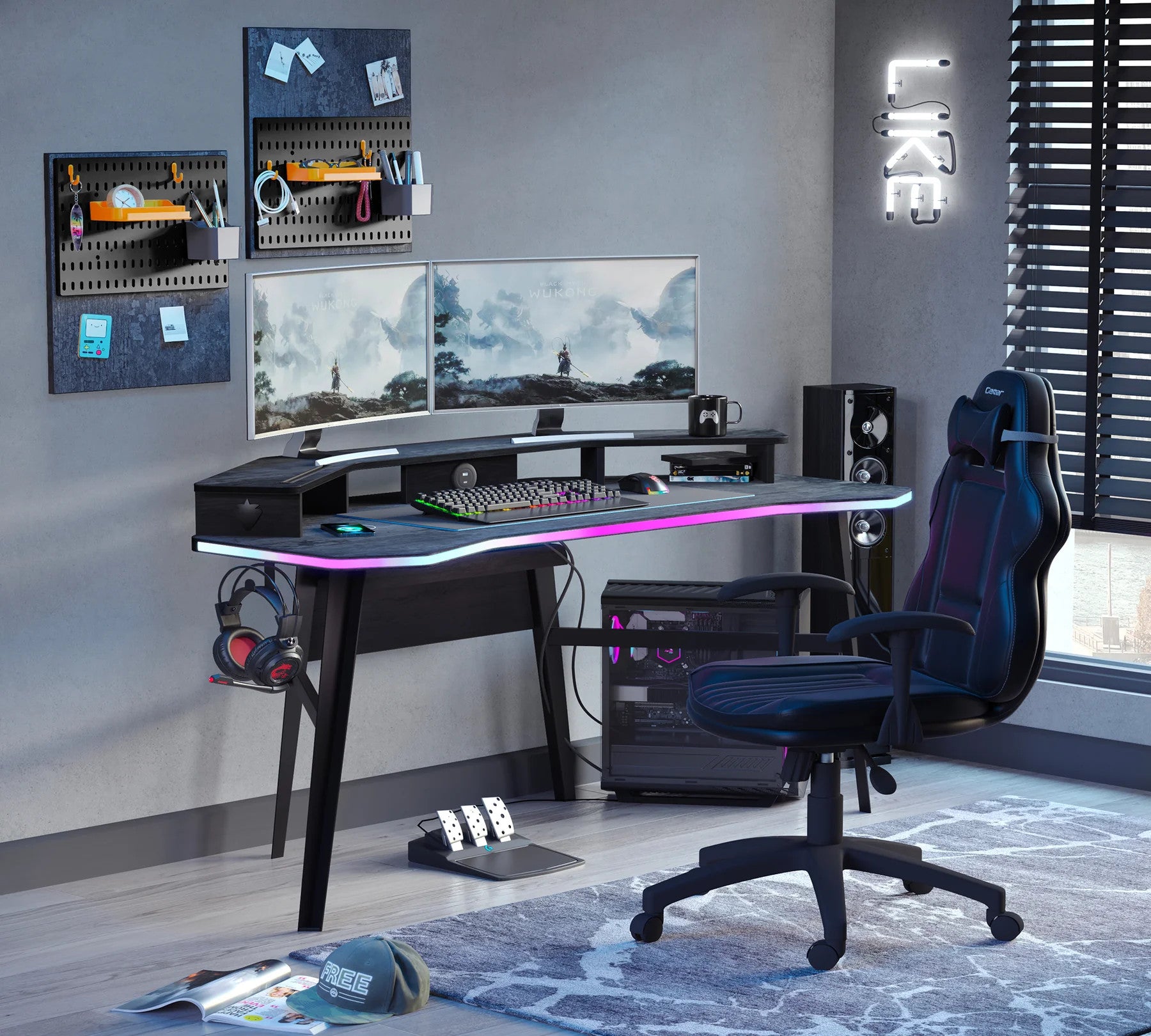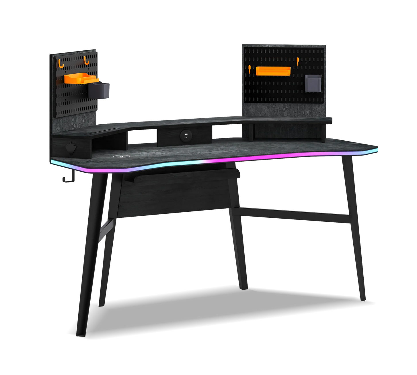 • Ordnung mit System: Seitliche Haken für dein Headset und eine clevere Halterung für Tablets halten deinen Workspace clean.
