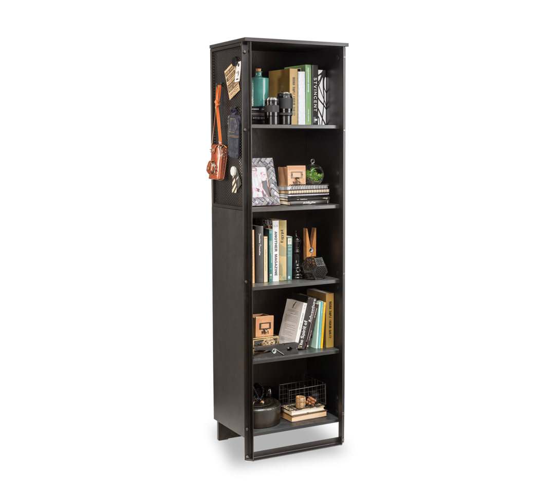 Dieses Bücherregal in schwarz bietet eine hervorragende Ausstellungsfläche für Ihr Zubehör und Bücher. Seitlich wurde zusätzlich ein Magnetboard mit zwei Hacken angebracht. Die weiteren Möbel der Serie Dark Metal finden Sie ebenfalls in unserem Online-Shop.