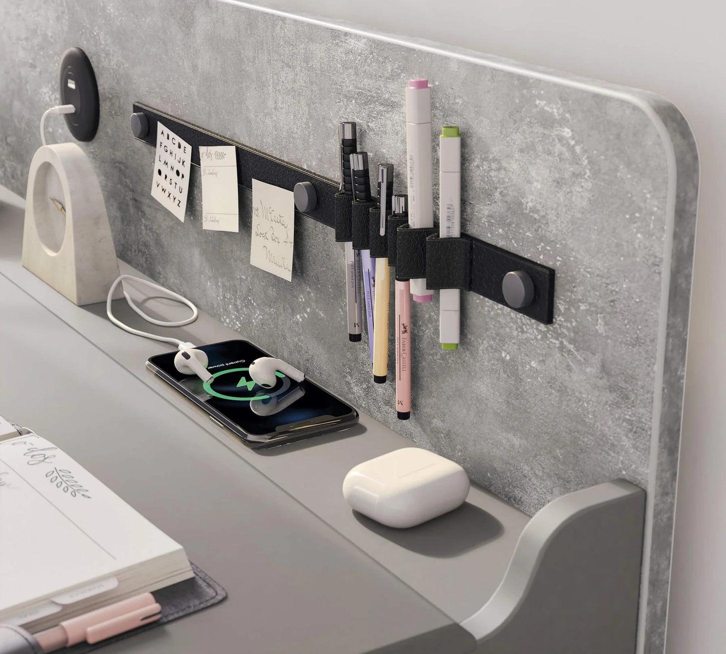 - Erhöhte Rückwand mit USB-Dose und Stiftenhalter