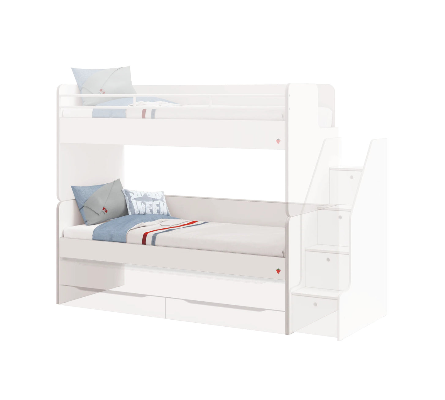 Das Bett kann als unterer Schlafbereich für ein Etagenbett verwendet werden.