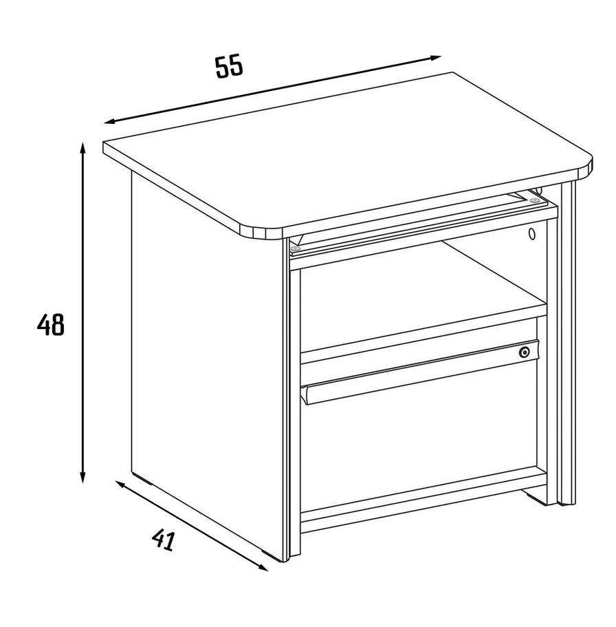 Mit diesem stylischen Nachttisch sind nicht nur die wichtigsten Sachen stets zur Hand sondern er bietet auch noch in Handumdrehen eine Sitzgelegenheit mit einem kleinen Tisch. Daran ergeben sich für die Nachtkommode vielfältige Verwendungsmöglichkeiten.
