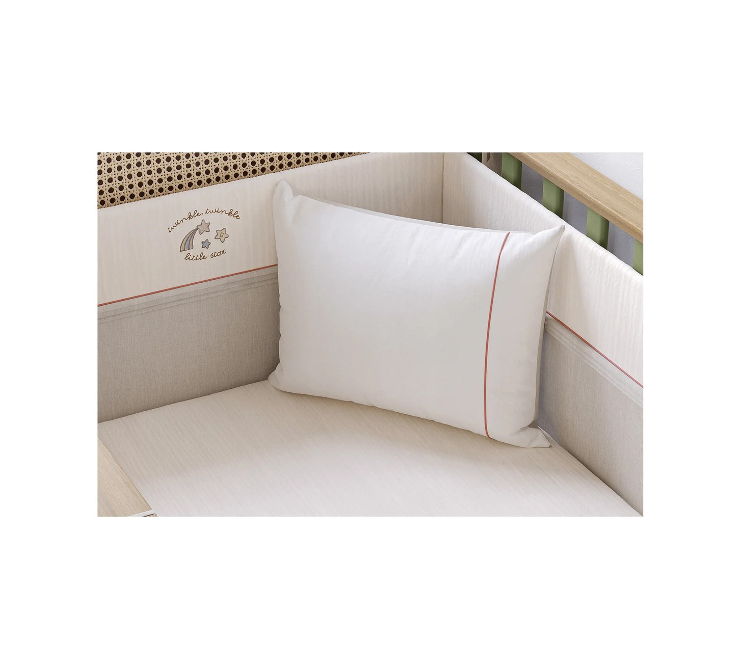 Produktinhalt und Maße: Das Set besteht aus 4 Teilen und passt zu Babybetten mit Gittern der Größe 70x140 cm.