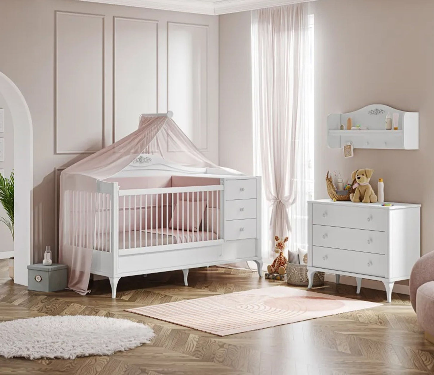 Mit seinem charmanten Landhausstil schafft das Babybett JASMIN von Newjoy eine behagliche und sichere Umgebung für Ihren kleinen Schatz. Das hochwertige Bettchen besticht nicht nur durch sein liebevolles Design, sondern auch durch praktische Details wie das höhenverstellbare Gitter, das sich optimal an die Bedürfnisse Ihres Kindes anpassen lässt.