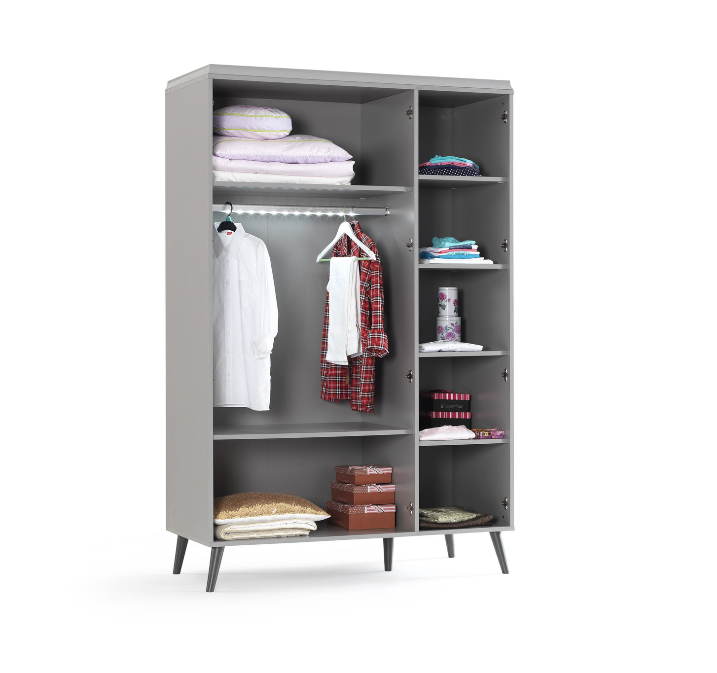 - Einteilung links und Mitte: 2 Fächer, 1 LED-beleuchtete Kleiderstange