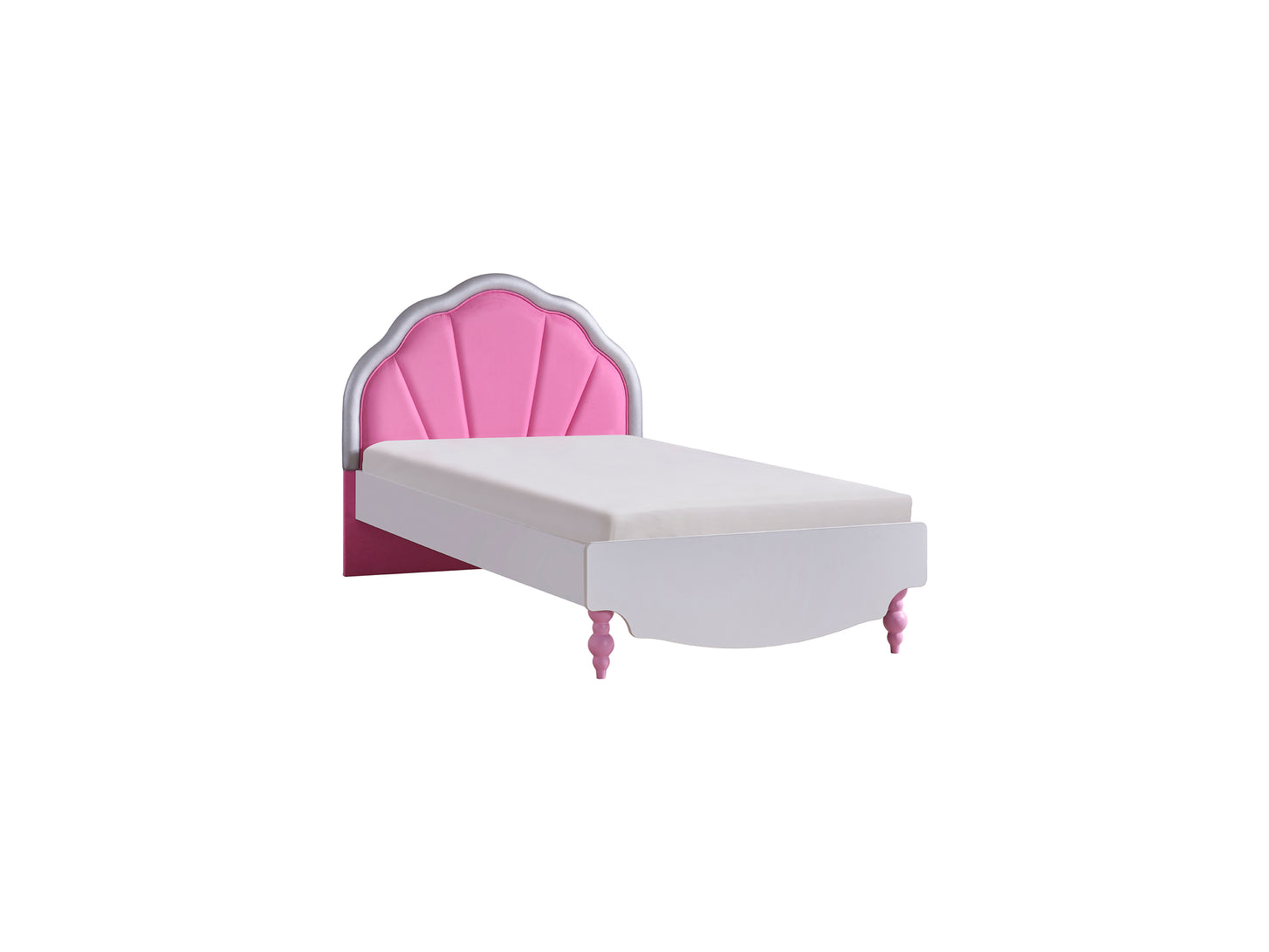 Das Kopfteil ist wahlweise mit einem passenden Druckmotiv oder in einer gepolsterten Variante in kräftigem Pink erhältlich. Mit einer Liegefläche von 100 x 200 cm bietet das Bett großzügigen Platz zum Träumen, Entspannen und Wohlfühlen.