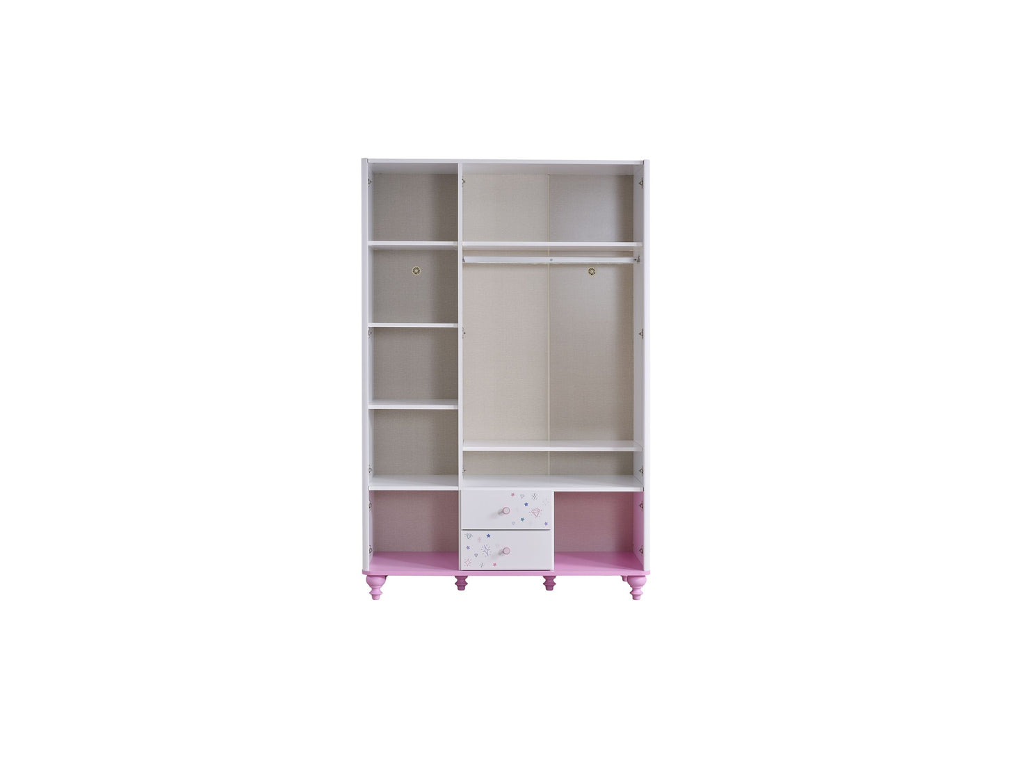 Im Inneren sorgen sieben Regalfächer und eine Kleiderstange für eine strukturierte und großzügige Aufbewahrung. Ein stilvoller Schrank, der das Prinzessinnenzimmer perfekt ergänzt.