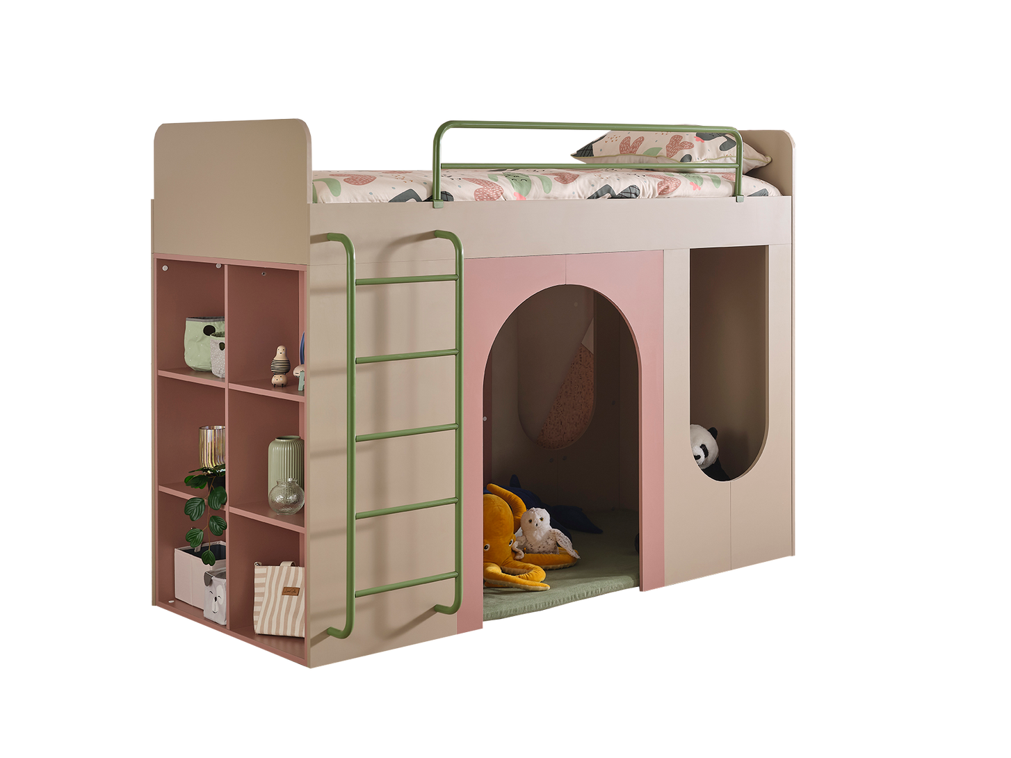 Das Kupa Nordic Hochbett ist mehr als nur ein Bett – es ist eine ganze Spielwelt für kleine Abenteurer. Mit seinem modernen, skandinavisch inspirierten Design verwandelt es jedes Kinderzimmer in eine gemütliche Oase zum Träumen und Spielen. Das absolute Highlight ist die kuschelige Spielhöhle, die Kindern einen fantasievollen Rückzugsort bietet. Neben der versteckten Höhle verfügt das Bett über praktische Regale, in denen Spielzeug, Bücher und Kuscheltiere ordentlich verstaut werden können. Die sichere Leiter ermöglicht den Kindern einen leichten Aufstieg in ihre eigene kleine Welt. Das Kupa Nordic Hochbett ist die perfekte Wahl für Eltern, die ihren Kindern ein multifunktionales Möbelstück bieten möchten, das sowohl Spaß macht als auch Sicherheit garantiert. - Liegefläche: 100 x 200 cm