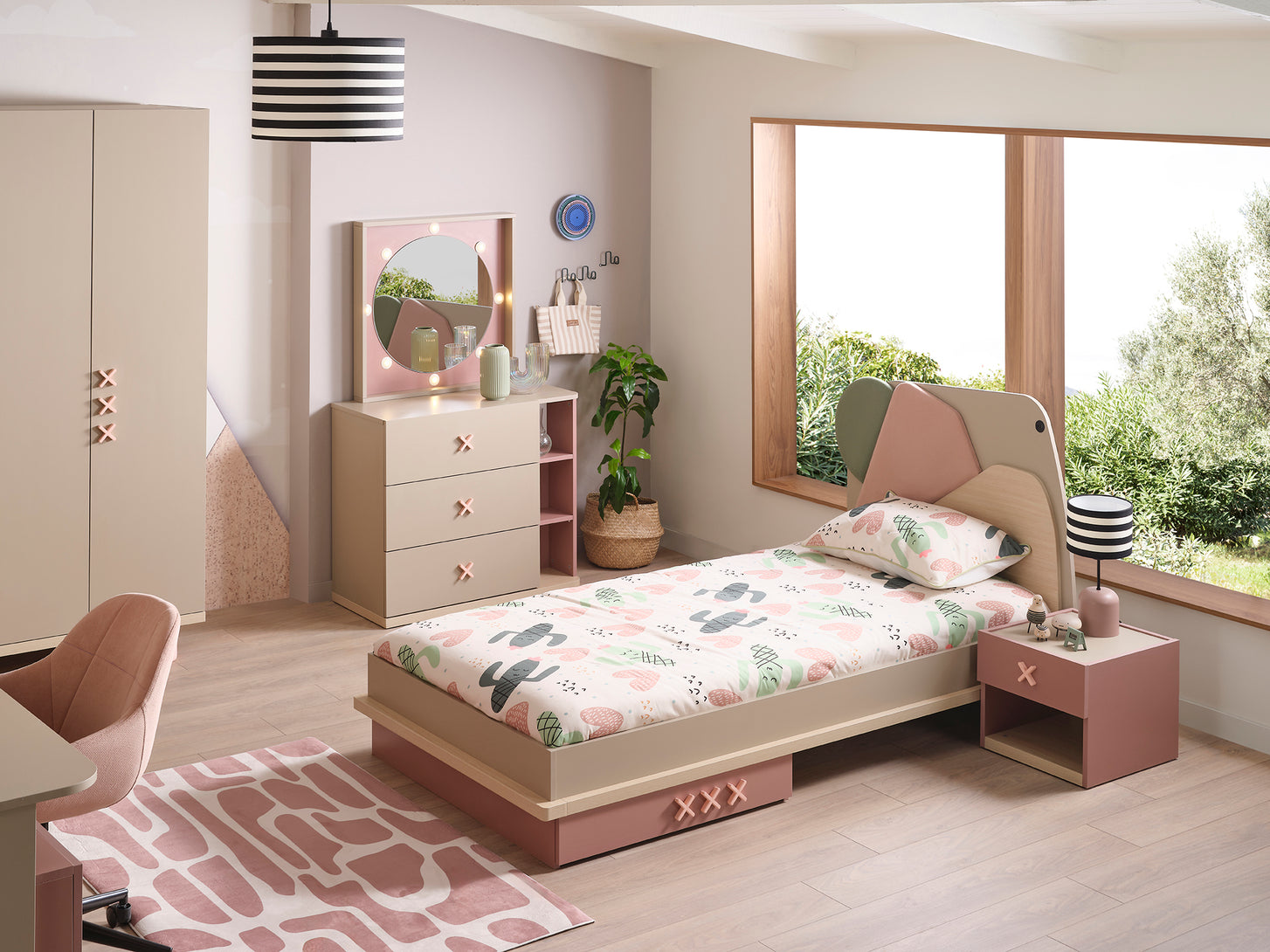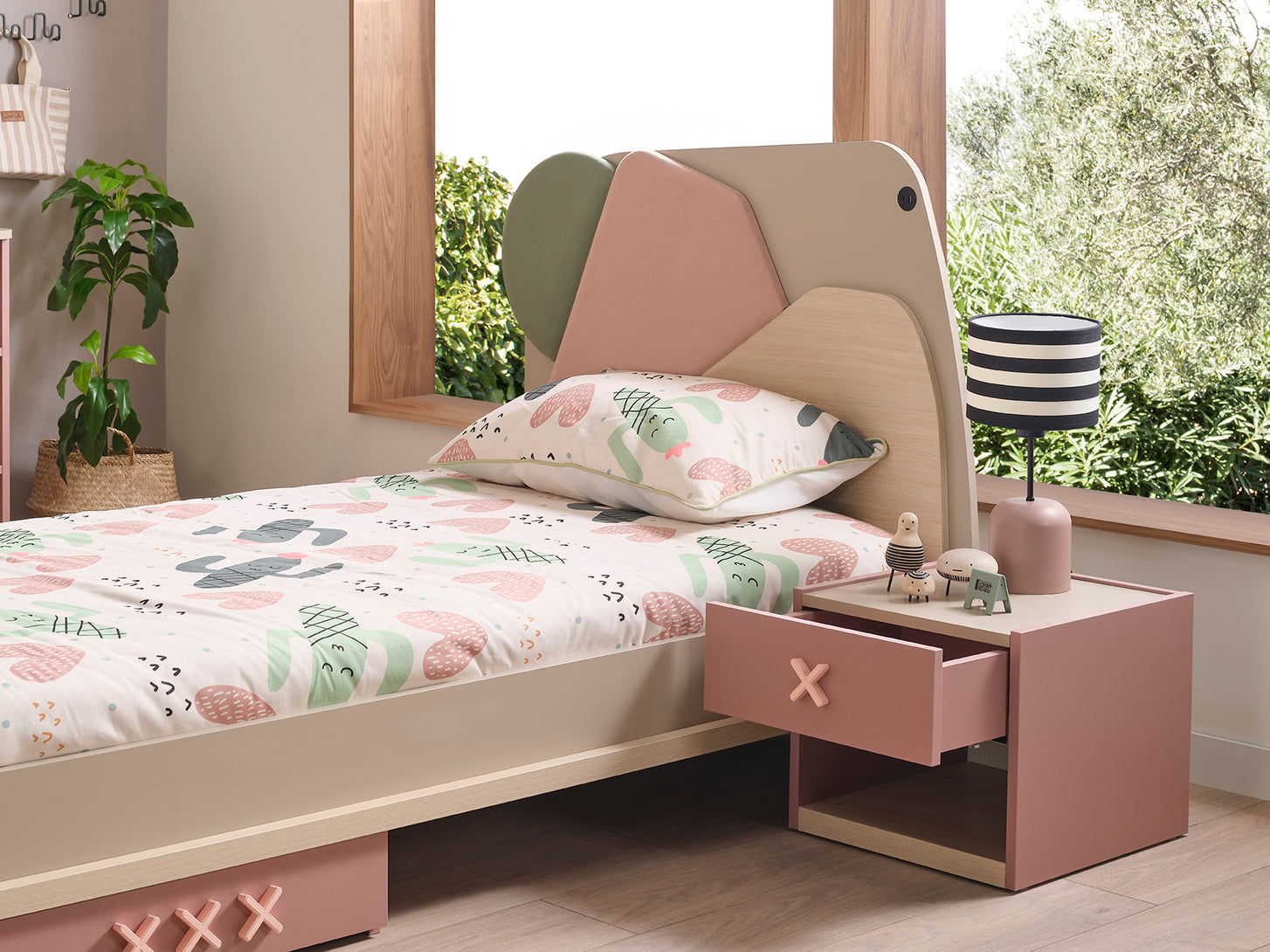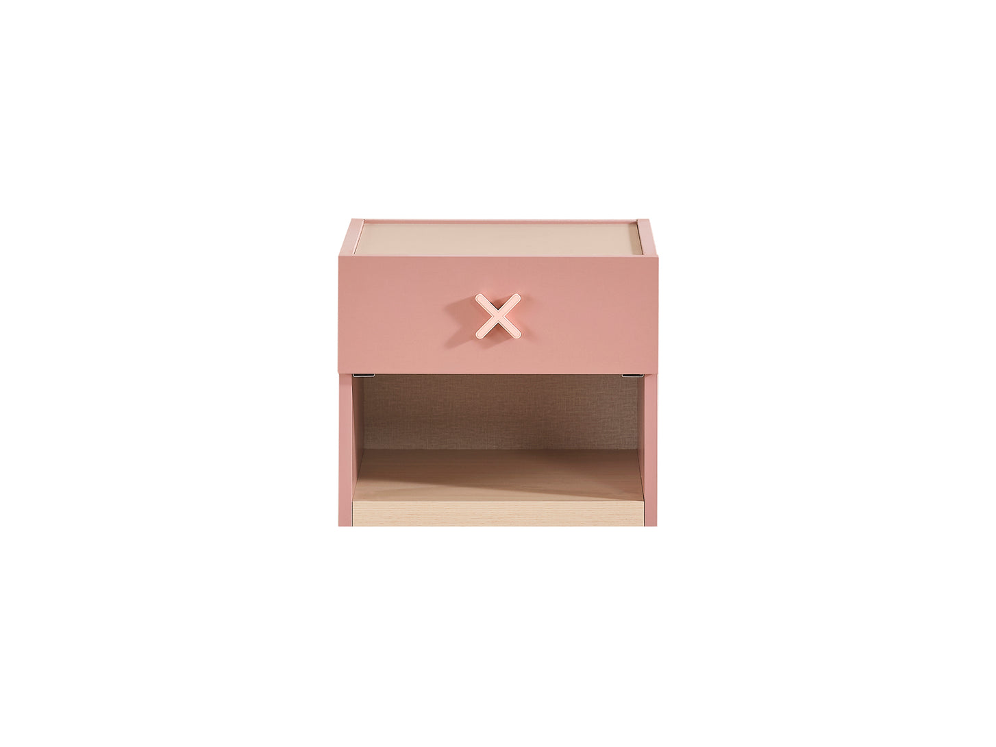 Der Nachttisch 'Nordic' von Kupa in zarten Pastelltönen von Rosa und Beige, mit offenem Fach und Schublade, ist die perfekte Ergänzung zum Bett der Serie. Ein Traum in zarter Eleganz. - B/H/T - 43 x 37 x 45 cm