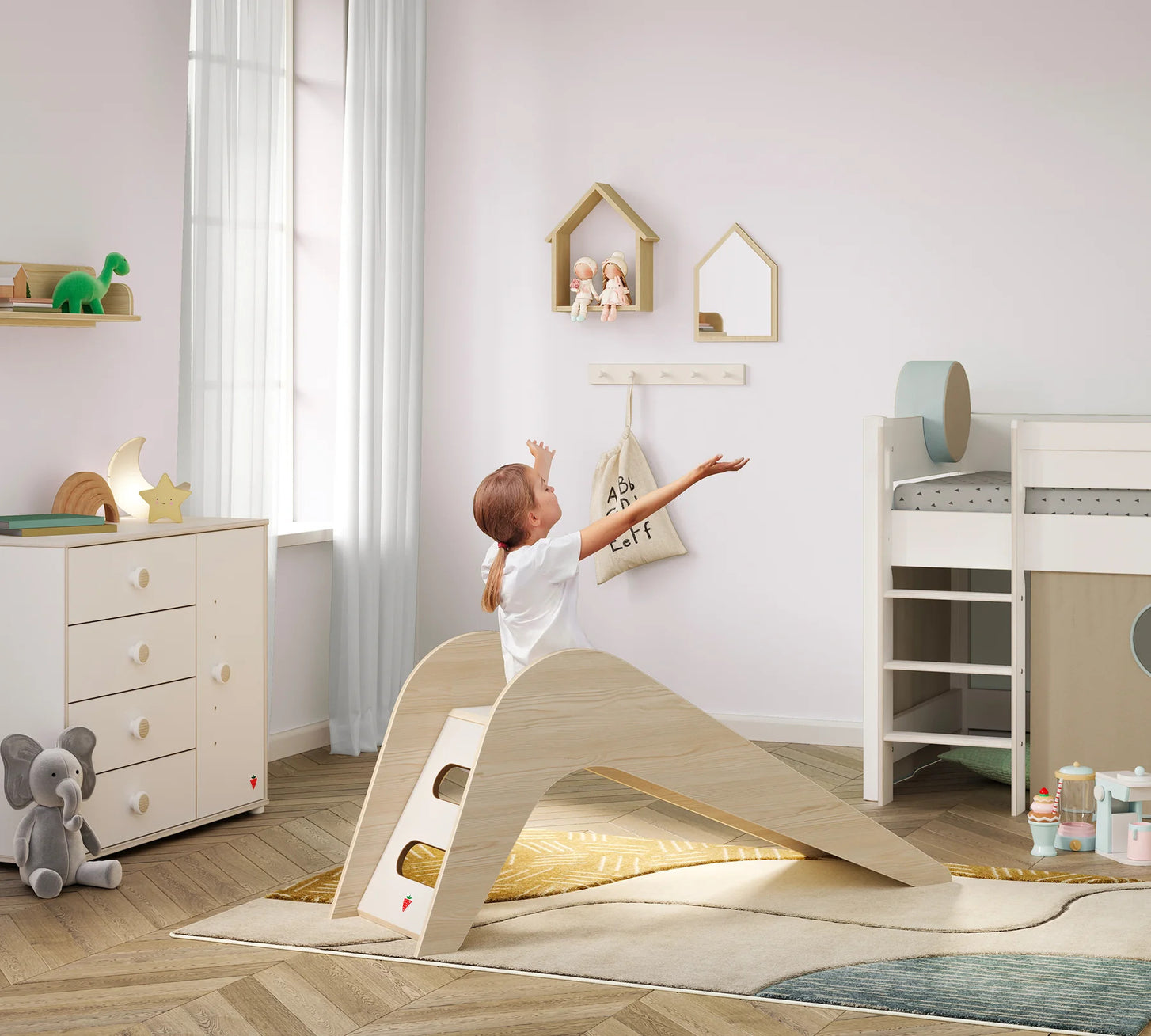 Bringen Sie den Spielplatz direkt nach Hause! Mit der Montes Natural Kinderrutsche von Cilek verwandeln Sie das Kinderzimmer in eine aufregende Abenteuerwelt. Diese hochwertige Holzrutsche vereint zeitloses Design mit dem pädagogischen Ansatz von Montessori und bietet Ihren Kleinsten einen sicheren Raum zur freien Entfaltung.