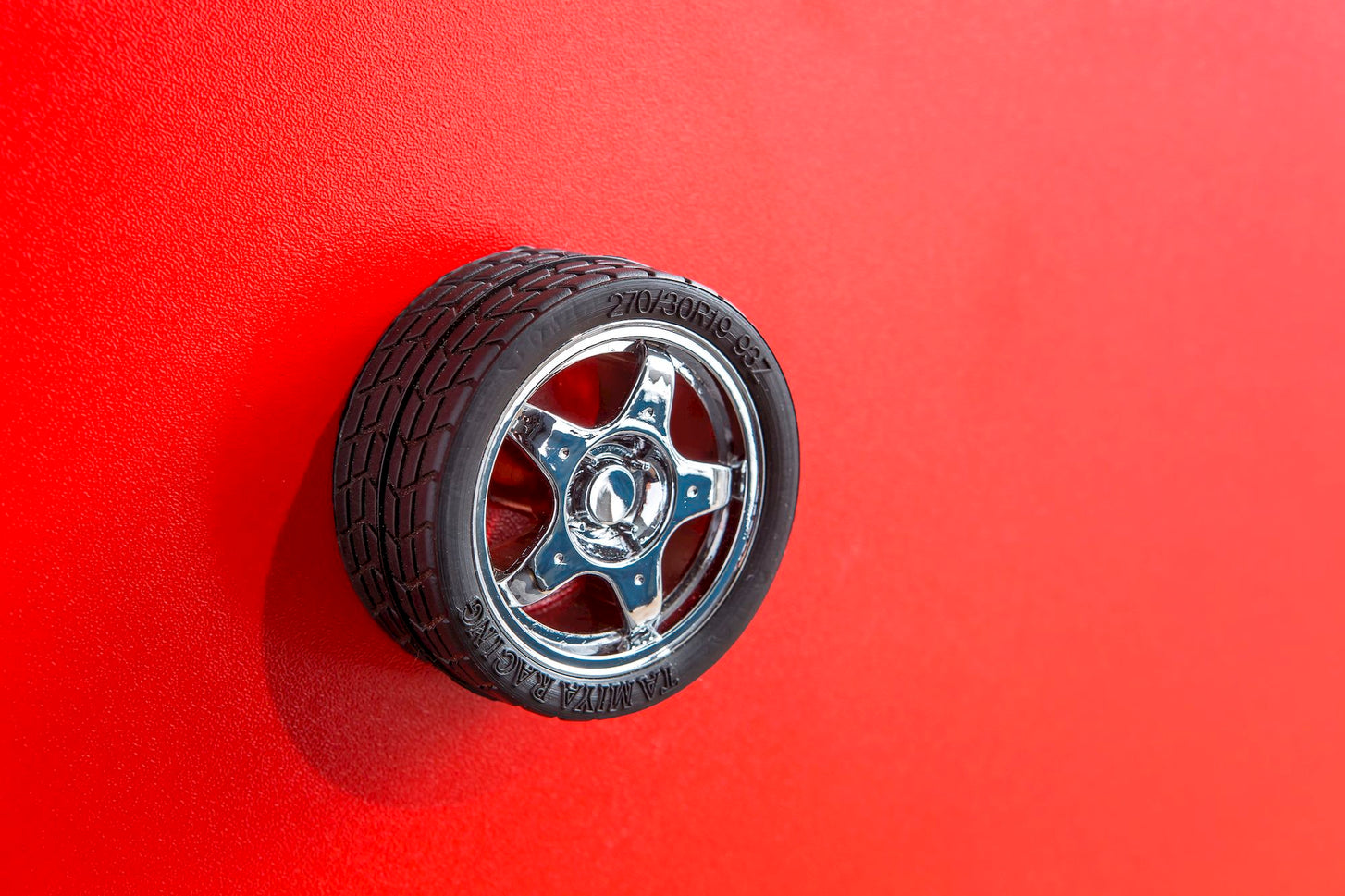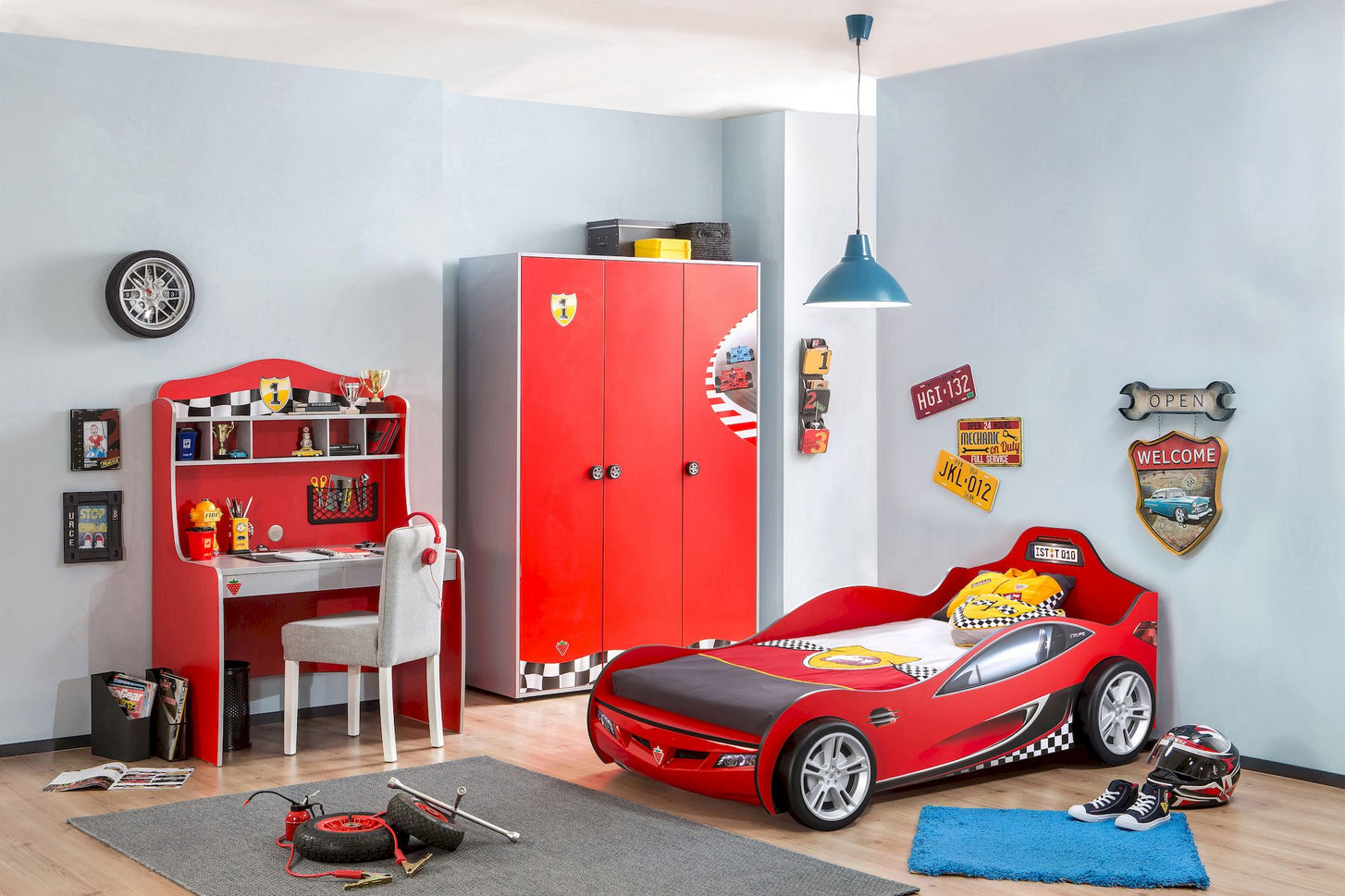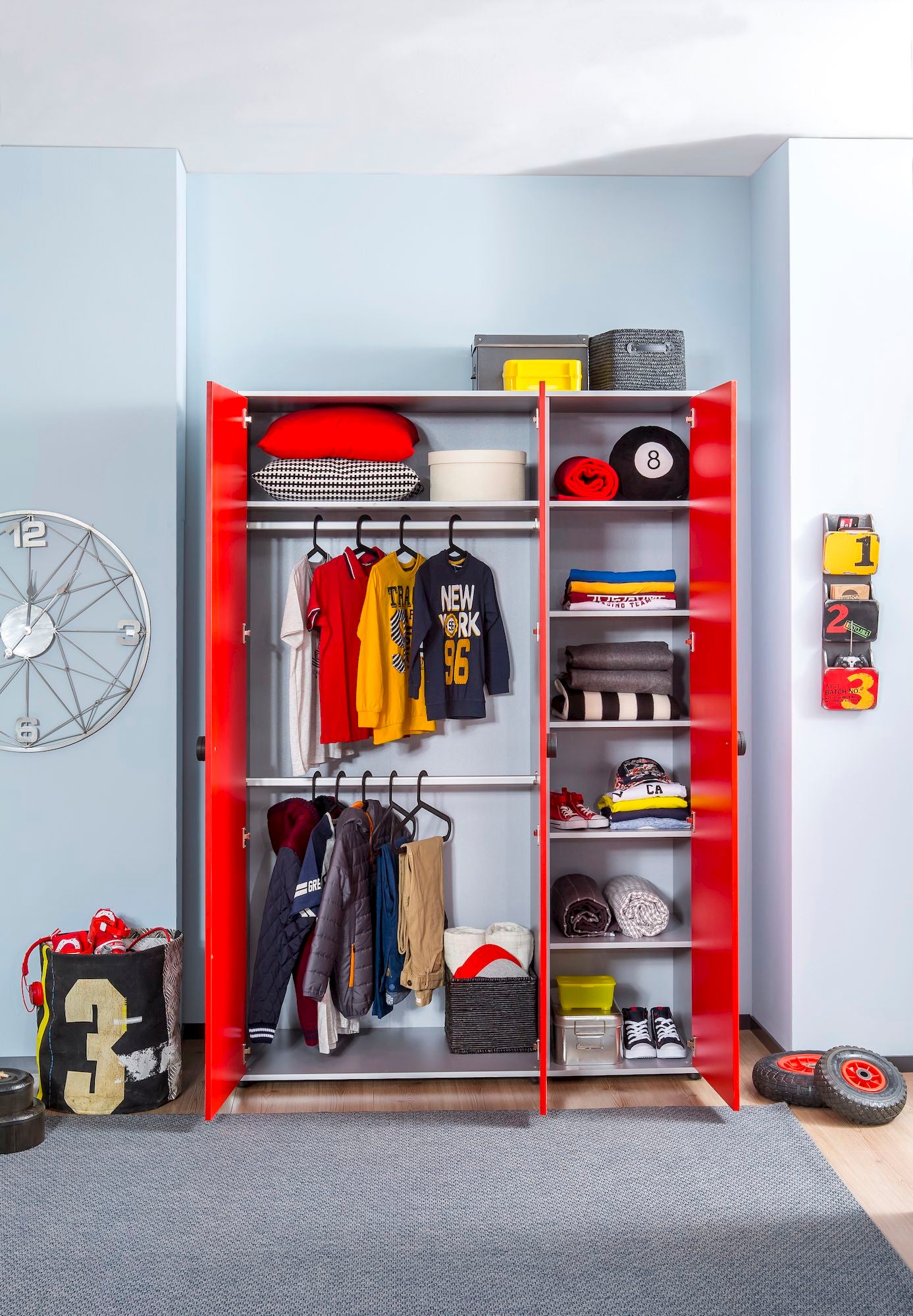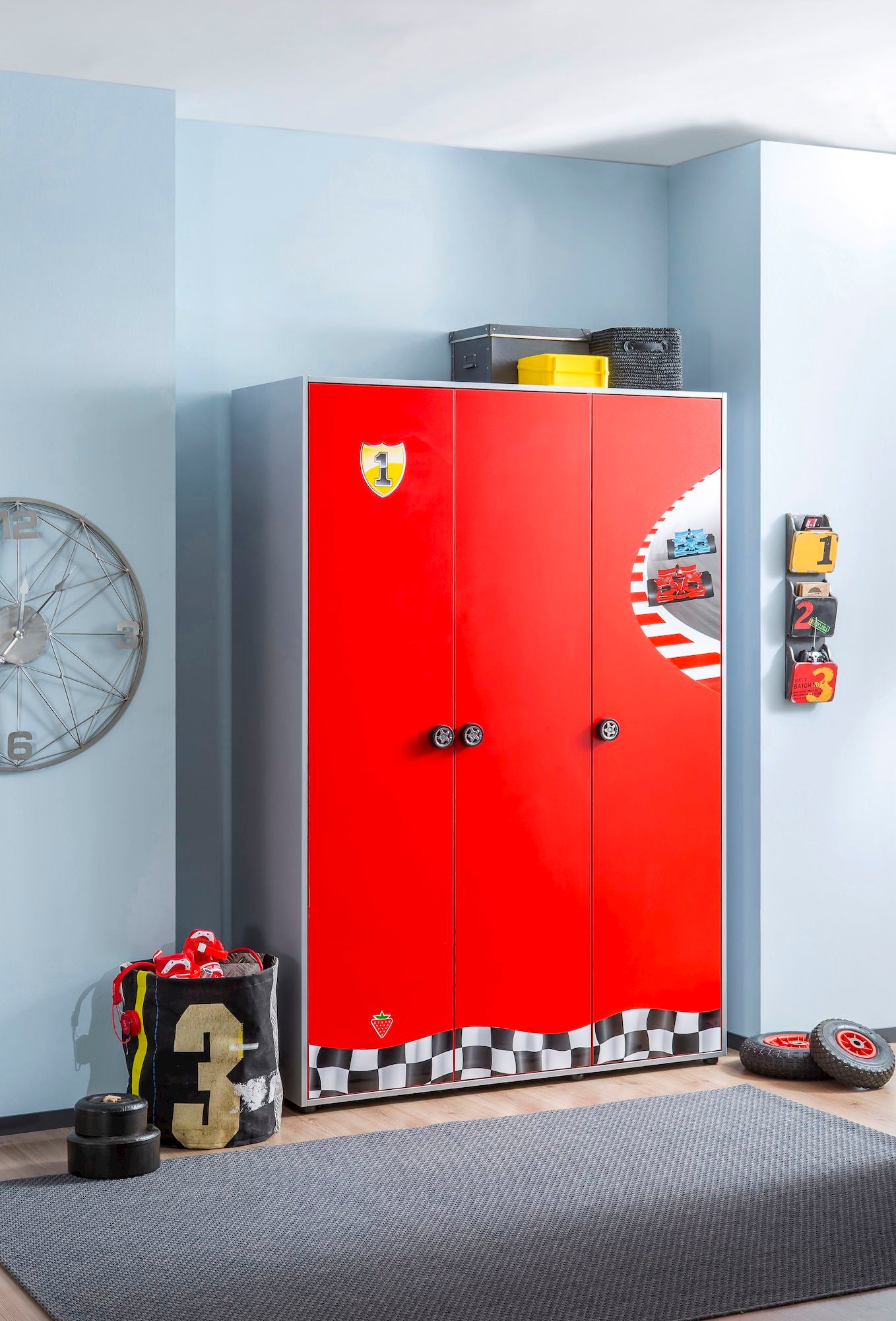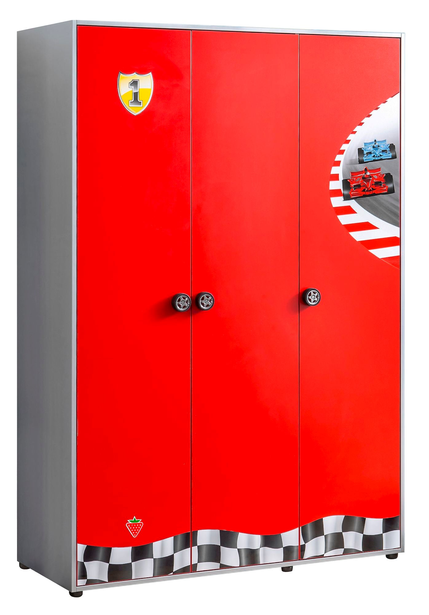 Mit dem Kinderkleiderschrank RACECUP wird es Ihrem kleinen Rennfahrer richtig Spaß machen, Ordnung zu halten. Dank der zwei Kleiderstangen und der zahlreichen Einlegeböden ist es einfach im Inneren die Übersicht zu behalten. Mit dem knalligen rot ist der Kleiderschrank ein absoluter Hingucker. Die realitätsgetreuen Griffe in Form von Autorädern sowie coole Motive schaffen ein authentisches Rennstreckenfeeling, welches für gute Laune im Kinderzimmer sorgt.